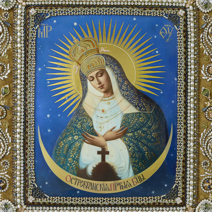 Вышитая икона "Богоматерь Остробрамская" в раме