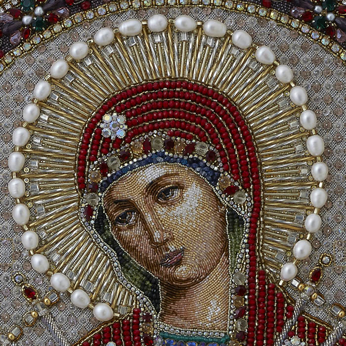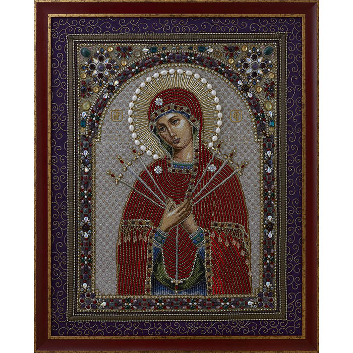 Вышитая икона "Богоматерь Умягчение Злых Сердец" в раме