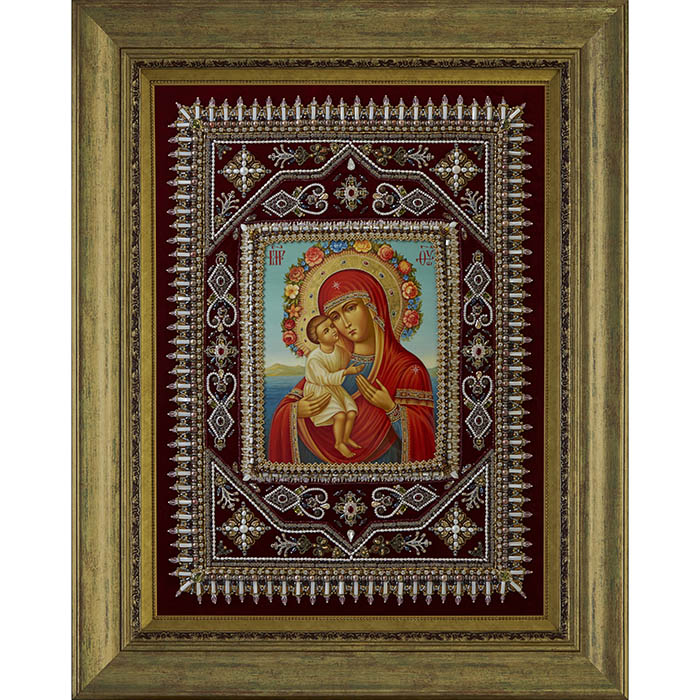 Вышитая икона "Богоматерь Жировицкая" в раме