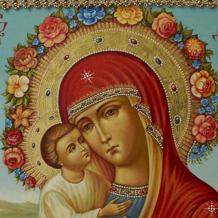 Центральный образ, заключенный в средник, выполнен в старинной ростовской технике живописи на эмали, что придает ликам Богоматери и Младенца сияющую чистоту и божественное спокойствие. Тончайшие черты, мягкий взгляд и дивное излучение — всё это создаёт ощущение встречи с тем, кто слышит любую молитву и наделяет верующих надеждой.