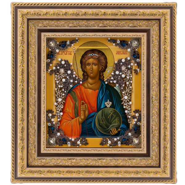 Эта икона Архангела Михаила — не просто произведение религиозного искусства, а величественный символ божественной силы, защиты и триумфа. Лик Архангела, написанный маслом на золоте, олицетворяет могущество небесного военачальника, стоящего на страже добра и порядка. Глубокий, проникновенный взгляд Михаила и уверенная жестикуляция его рук напоминают о непоколебимости веры и власти над злом.