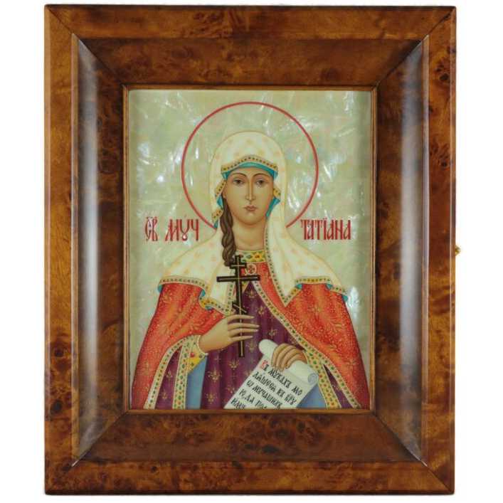 Икона на натуральном перламутре "Святая Татиана" в киоте