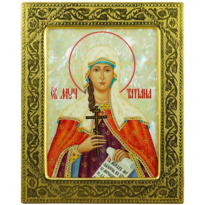 Икона "Святая Татиана" на натуральном перламутре в золотой раме