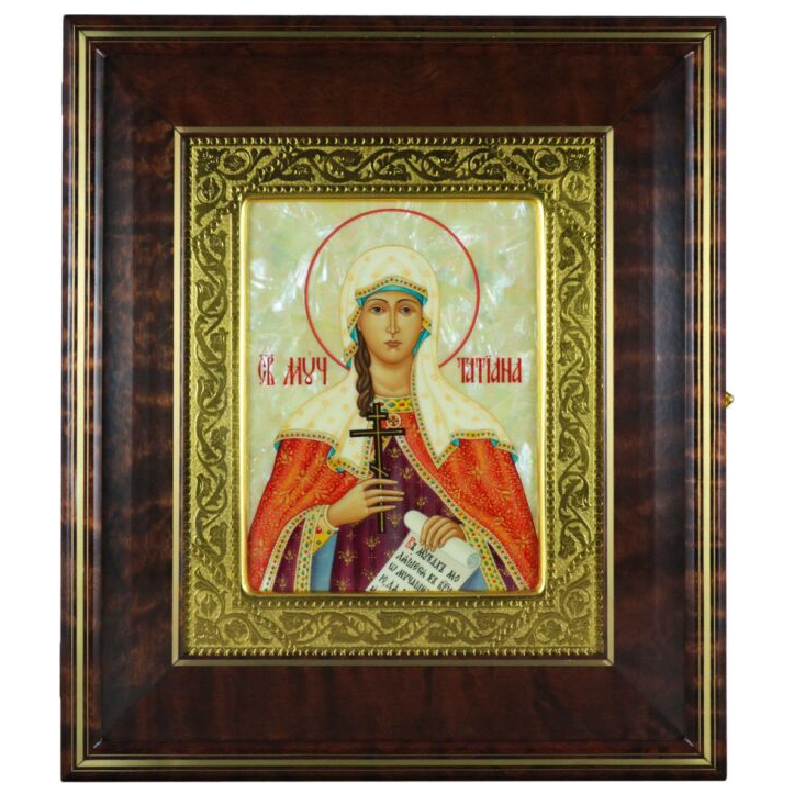 Икона "Святая Татиана" в киоте и золотой раме на натуральном перламутре