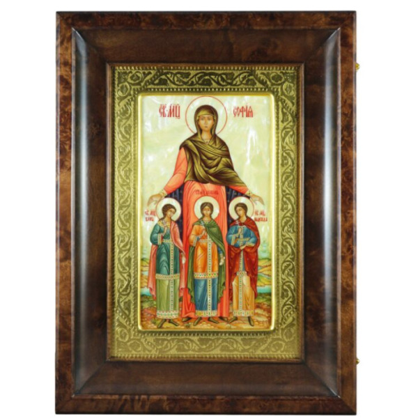 Икона «Вера, Надежда, Любовь и мать их София» изображает святых, особо почитаемых в христианском мире. Их имена стали нарицательными, и обозначают важнейшие добродетели: веру в Господа Бога, надежду на спасение и любовь к Творцу, а также всему сущему, созданному его Небесной силой.