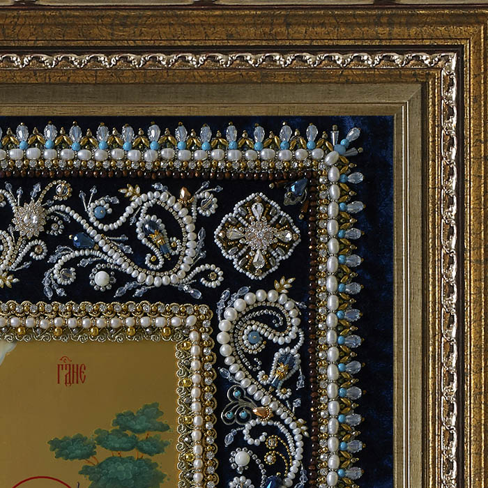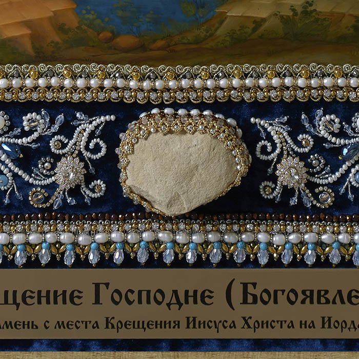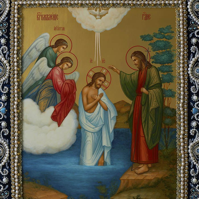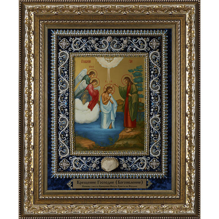 Вышитая икона "Богоявление. Крещение Господне" в раме