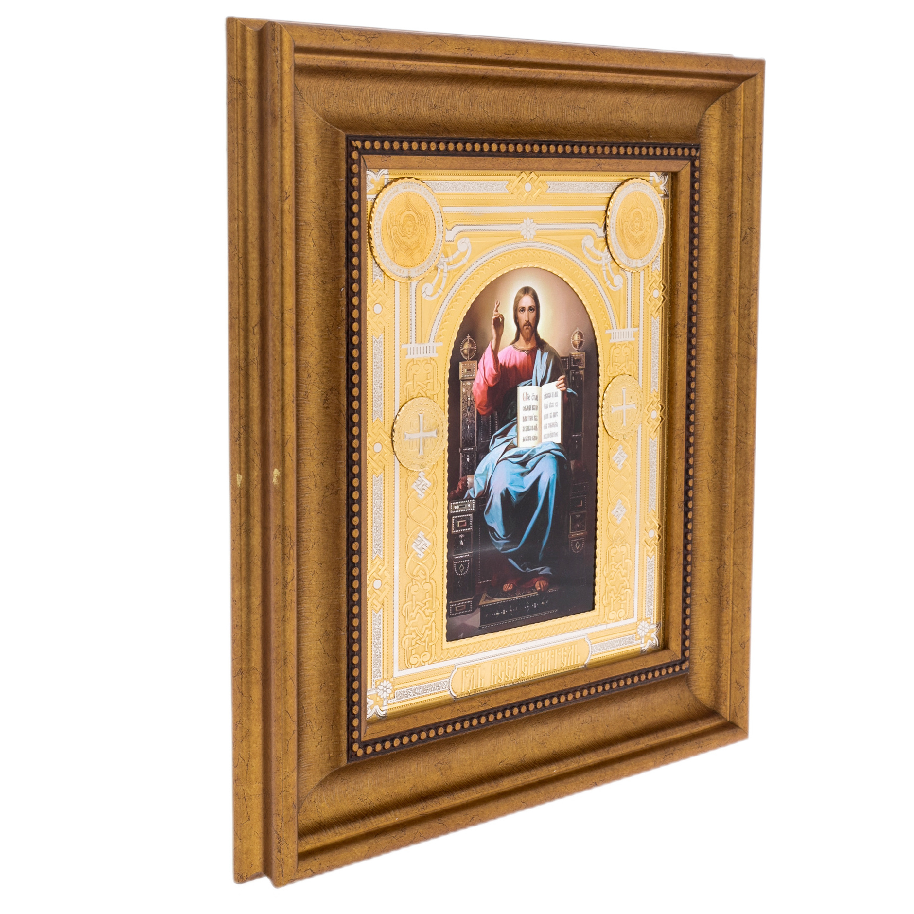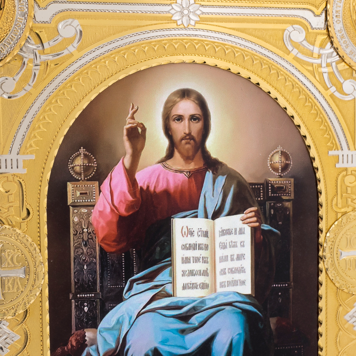 Изделие служит не только предметом поклонения и молитвы, но и достойным элементом интерьера, способным передать атмосферу святости и благодати. Качественные материалы и тщательная проработка деталей делают икону "Господь Вседержитель" символом духовной силы и красоты, достойным семейной реликвии и ценным подарком.