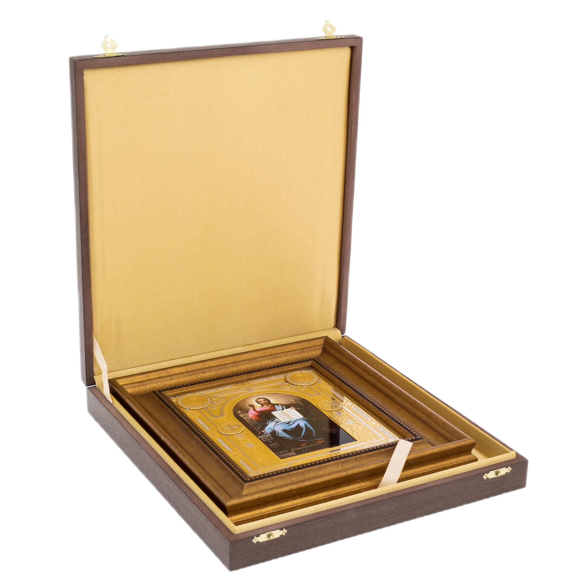 Икона "Господь Вседержитель" — изысканное произведение православного искусства, созданное с применением златоустовской техники. Изображение Спасителя, сидящего на троне, выполнено с особой глубиной и выразительностью, отражающей традиции иконописи и духовную значимость образа. Рама из благородного дерева украшена тончайшей гравировкой с золотым и серебряным тиснением, создавая атмосферу торжественности и почтения. Это изделие предназначено для истинных почитателей православной культуры, желающих украсить дом или храм достойным символом веры.