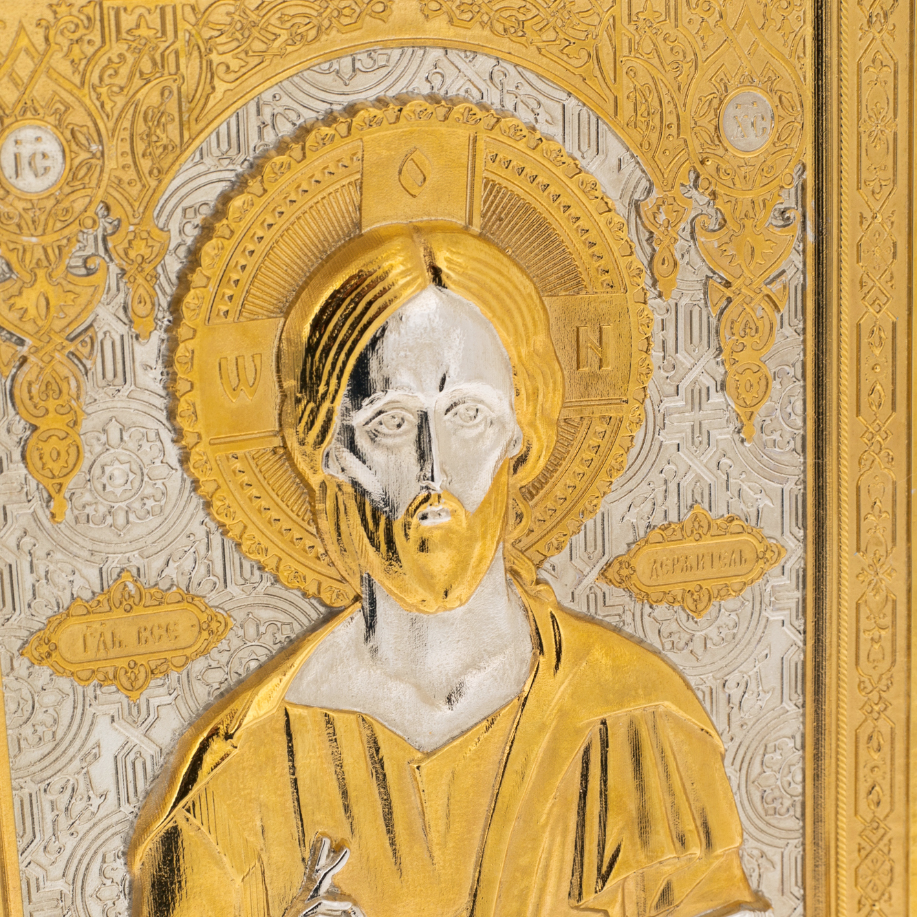 Эта икона Христа Спасителя, выполненная в технике гальванопластики мастерами из Златоуста, воплощает собой гармонию величия и святости. Каждая деталь — от ореола с изящной гравировкой до плавных линий одежды, окутанных сиянием позолоты — призвана передать божественное присутствие, унося взгляд за пределы обыденного, в мир духовного просветления и благоговения.