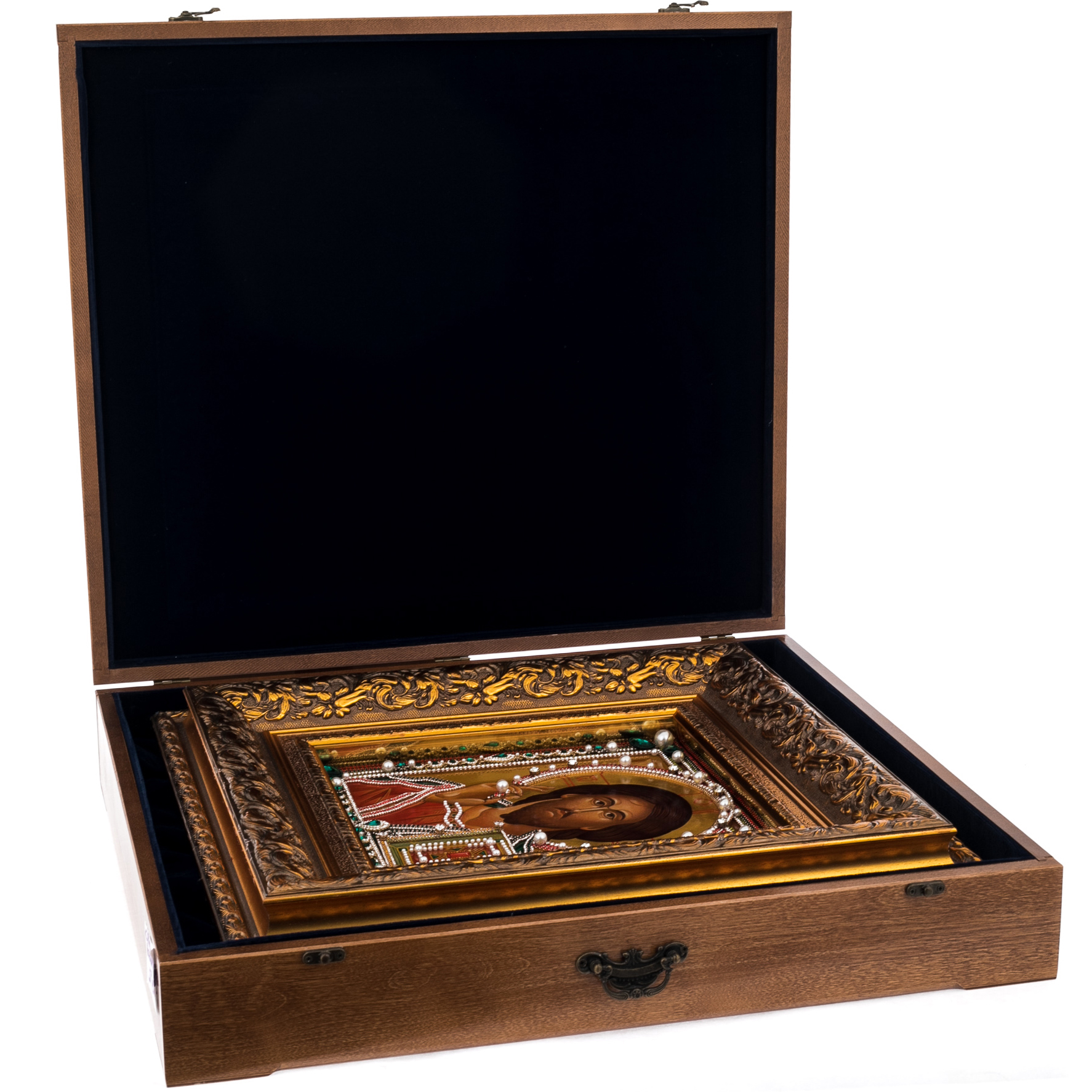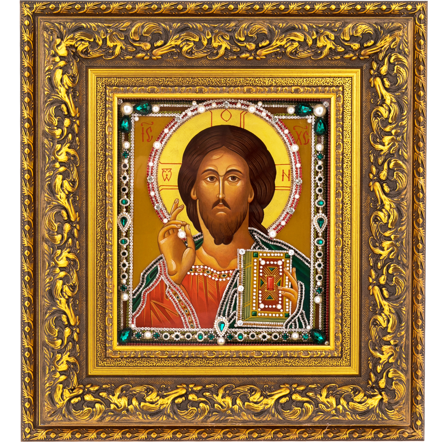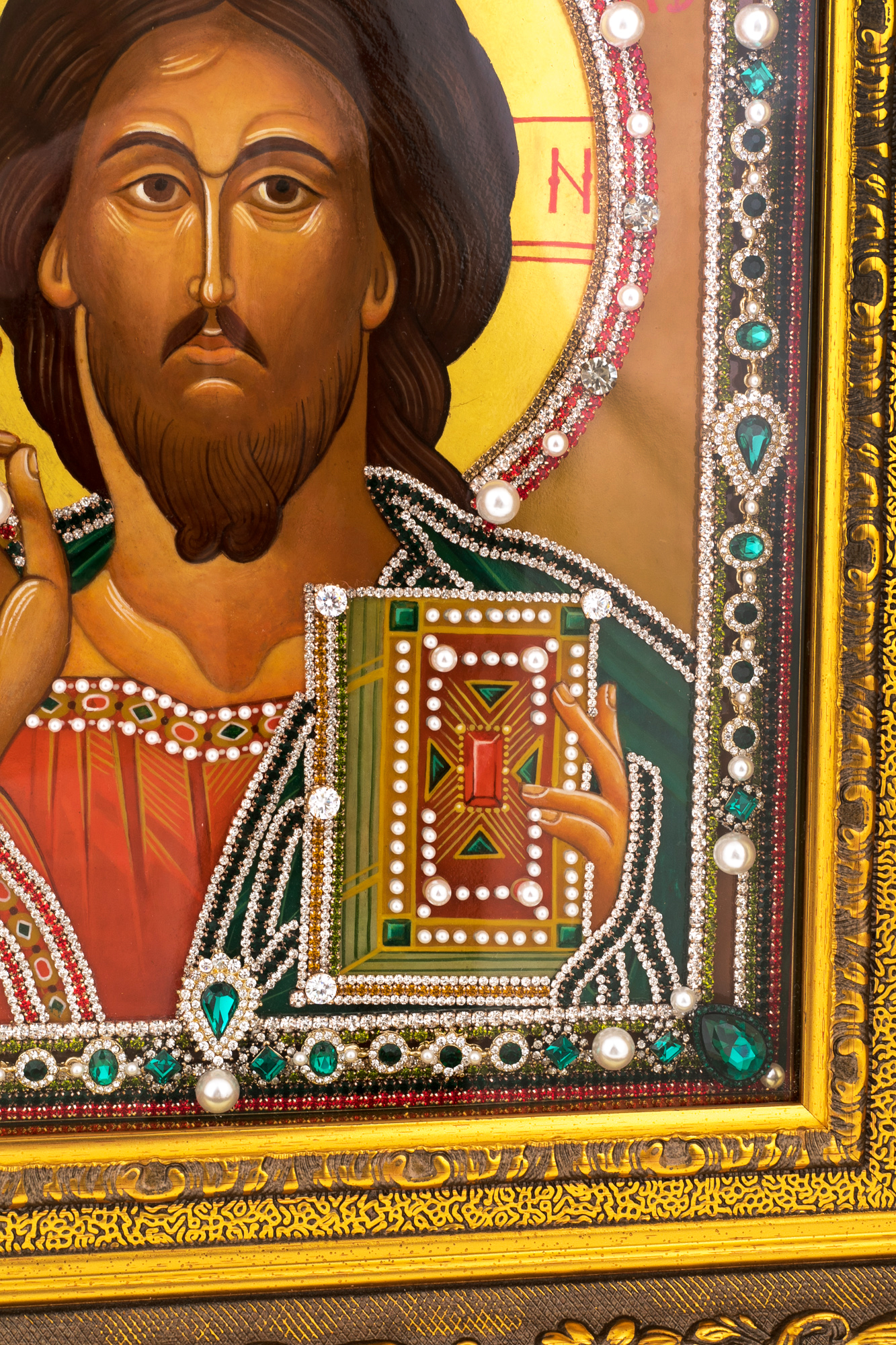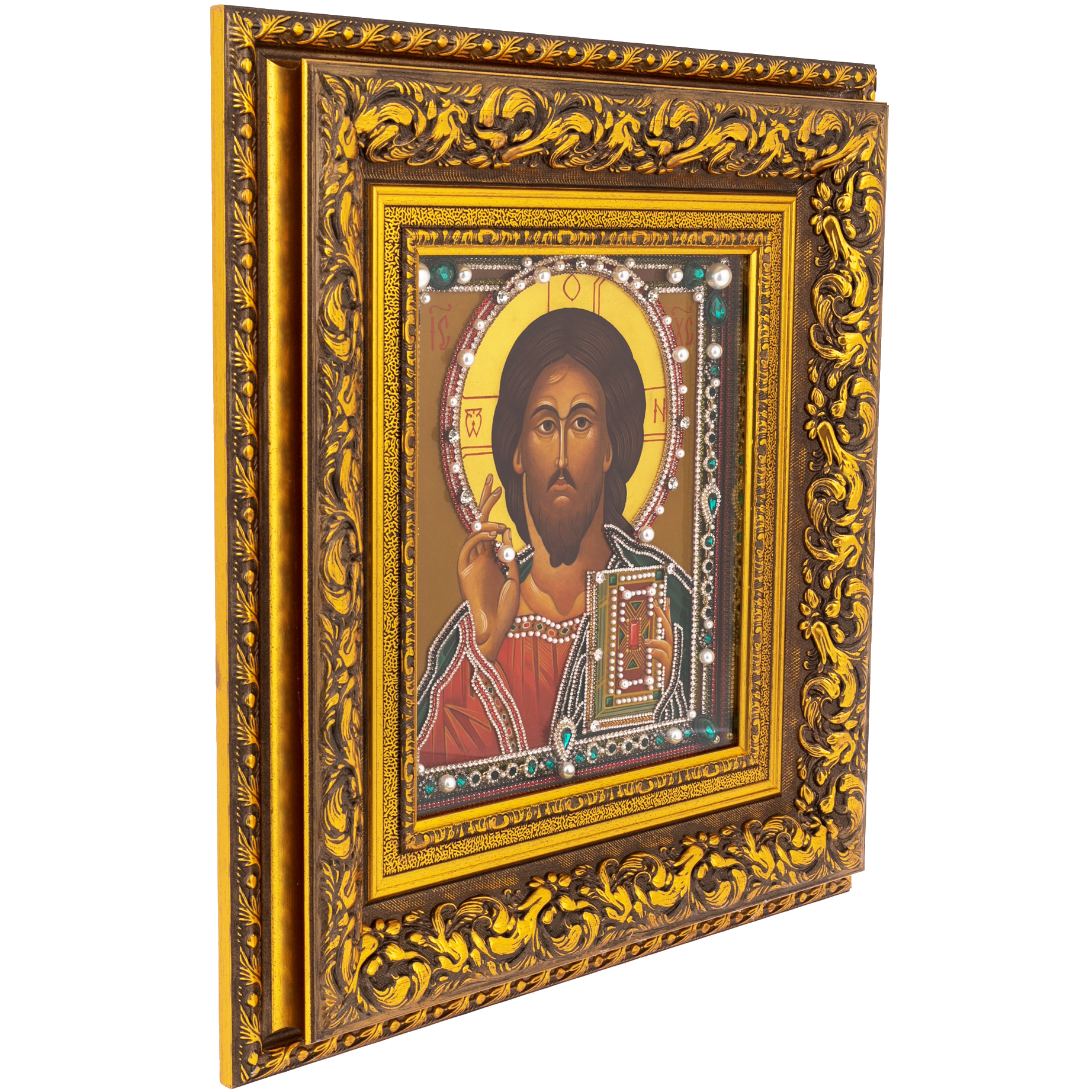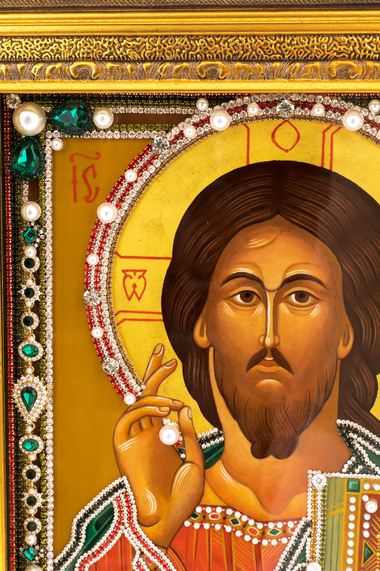 Материалы:липовая доска левкас, масляные краски, сусальное золото, стекло, жемчуг, фианиты, стразы.