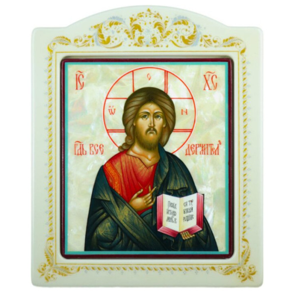 Икона с перламутром "Спаситель" в раме с орнаментом