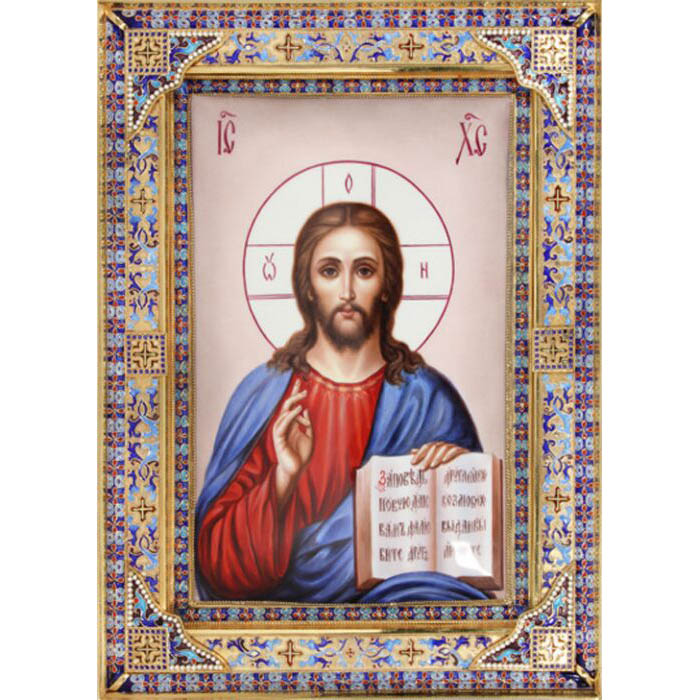 Икона "Спас Вседержитель" с малыми углами, финифть