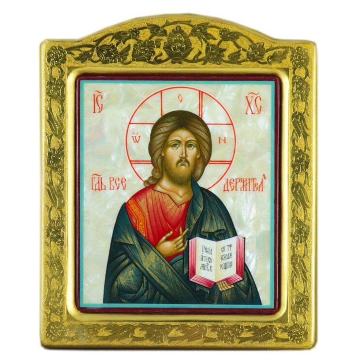 Икона "Спаситель" с перламутром в золотой раме