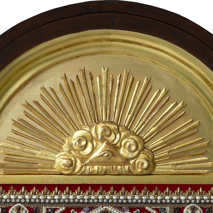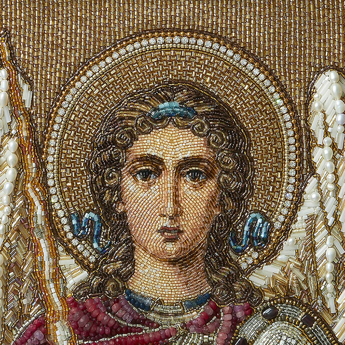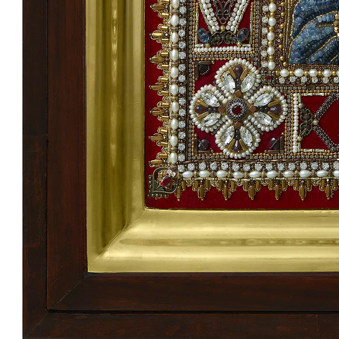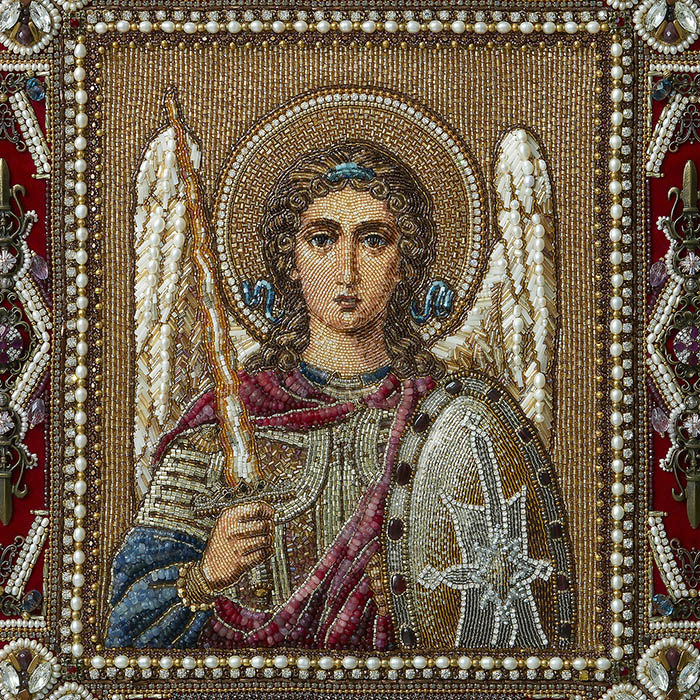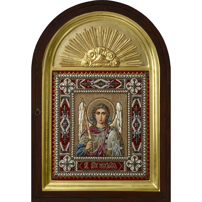 Вышитая икона "Архангел Михаил" в антикварном киоте