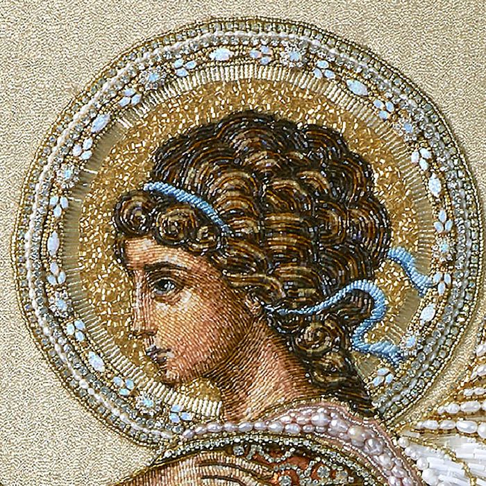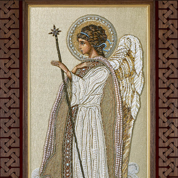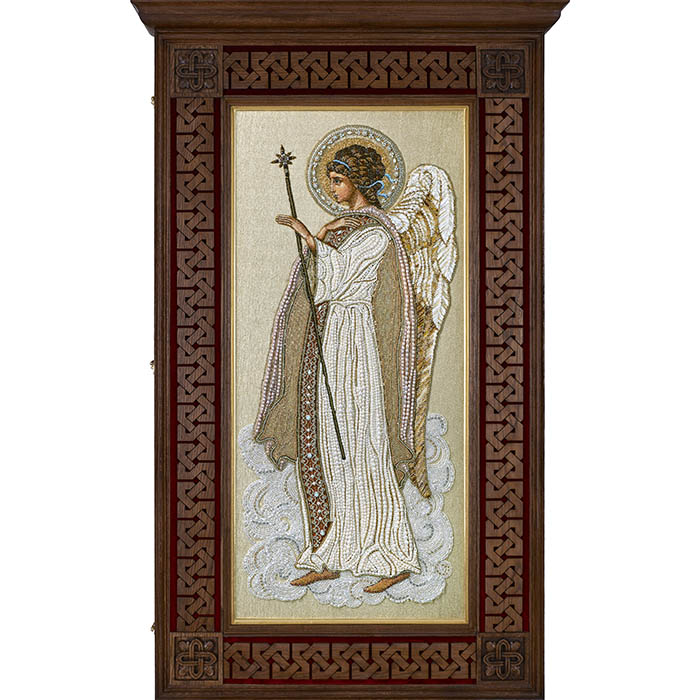 Вышитая икона "Архангел Михаил" в раме и киоте