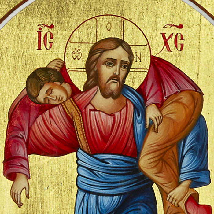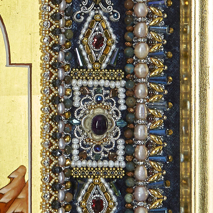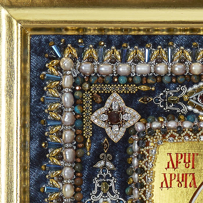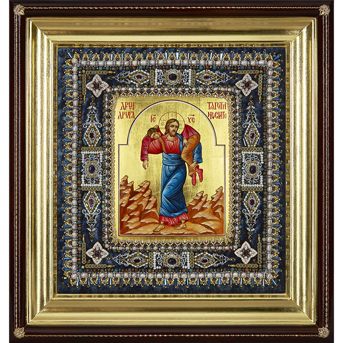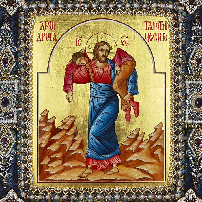 Вышитая икона "Носите тяготы друг друга" в раме и киоте