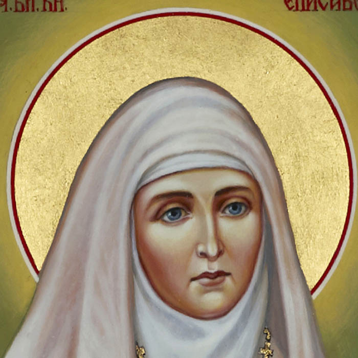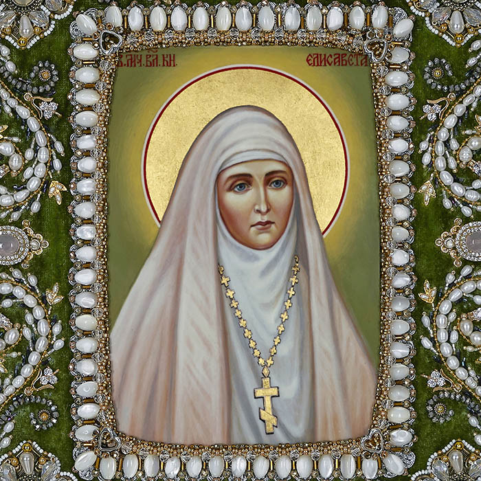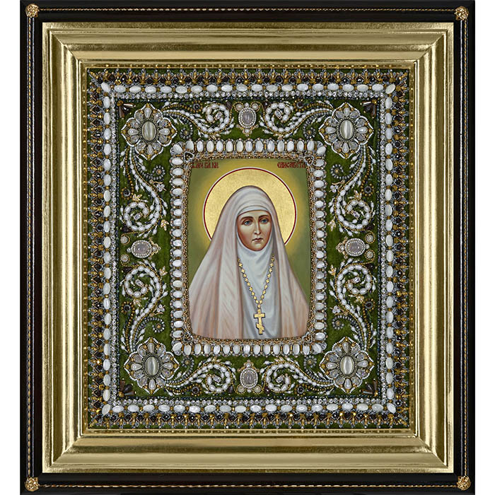Вышитая икона "Преподобномученица великая княгиня Елисавета Федоровна" в раме и киоте