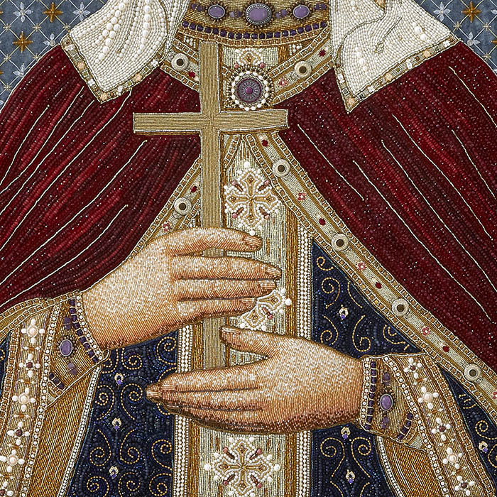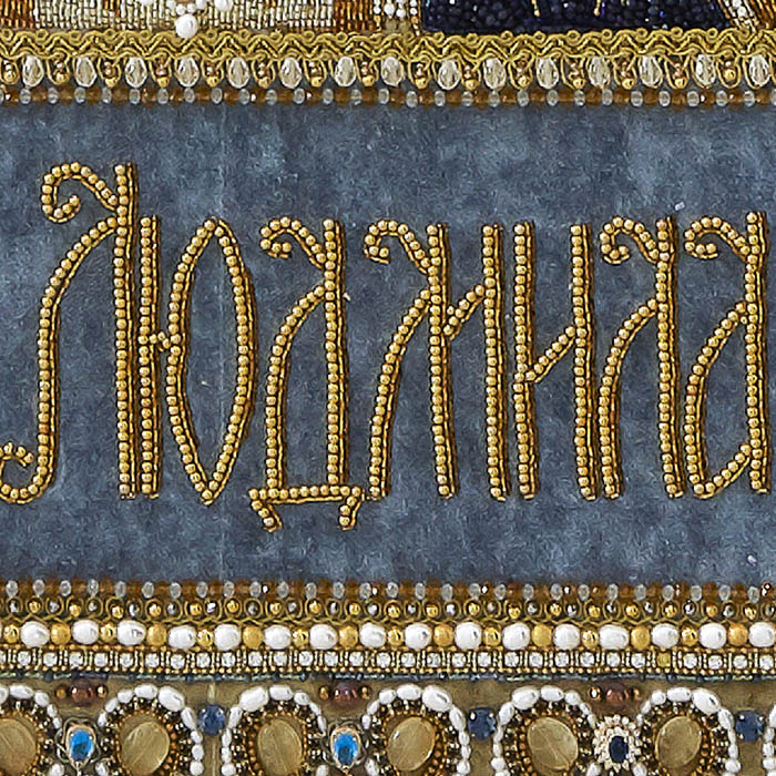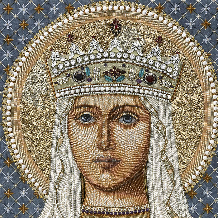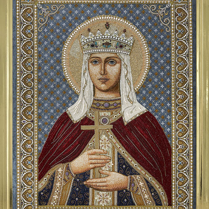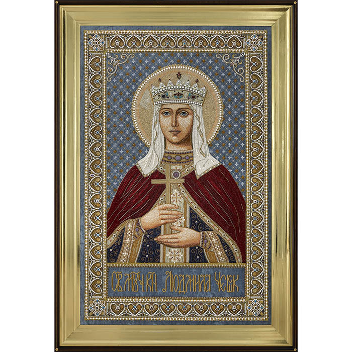 Вышитая икона "Святая мученица Людмила, княгиня Чешская" в раме и киоте