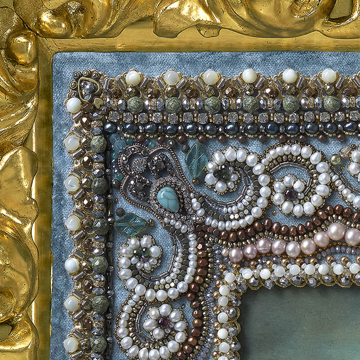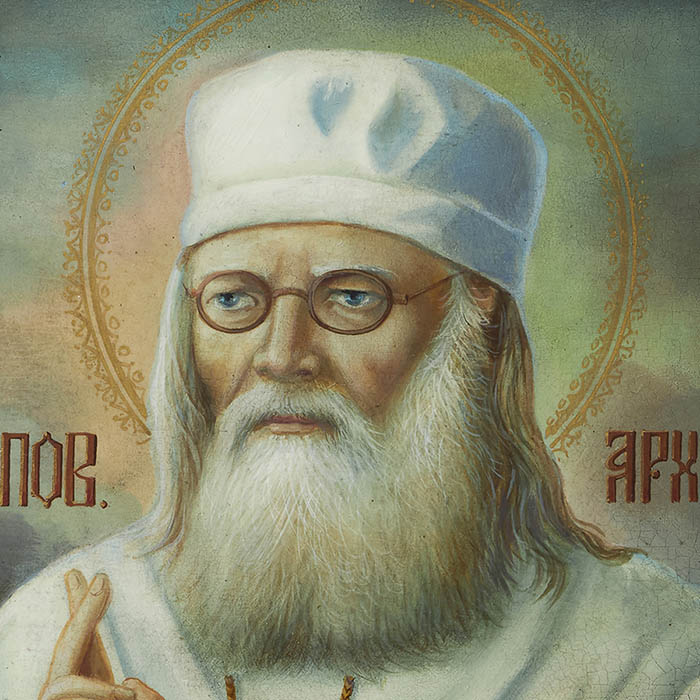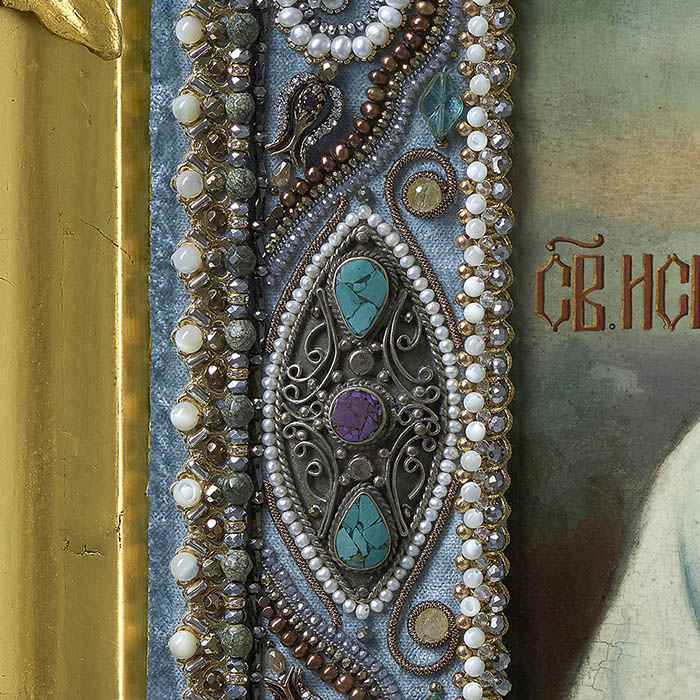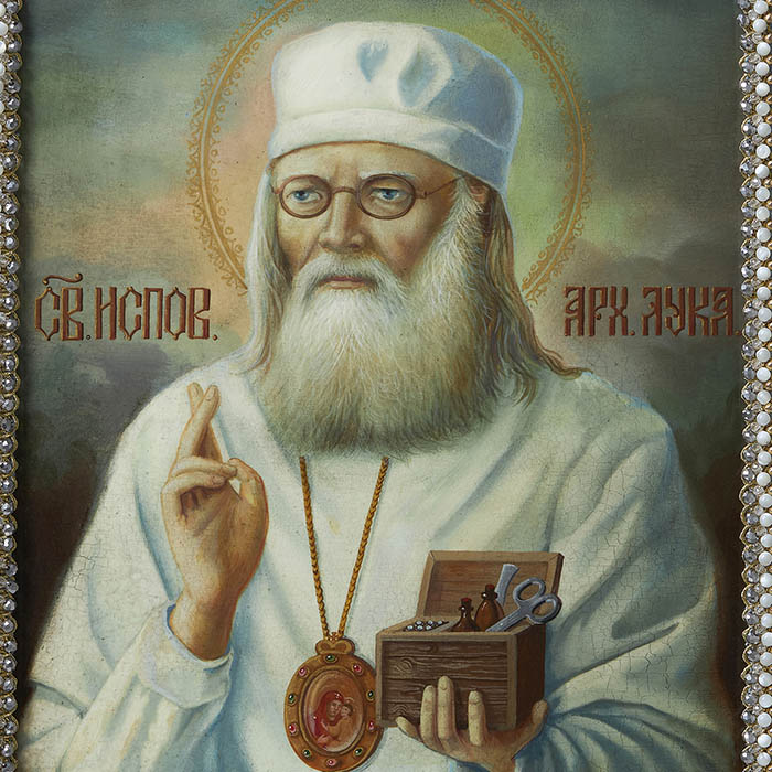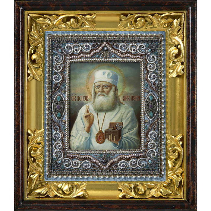 Вышитая икона "Святитель Лука Крымский" в антикварной раме и киоте