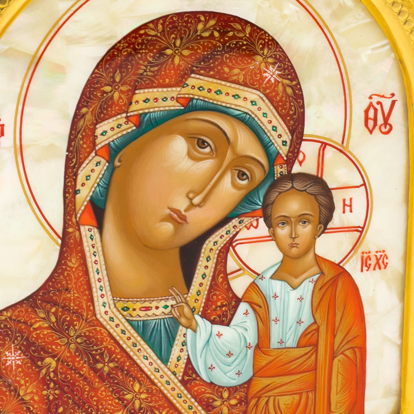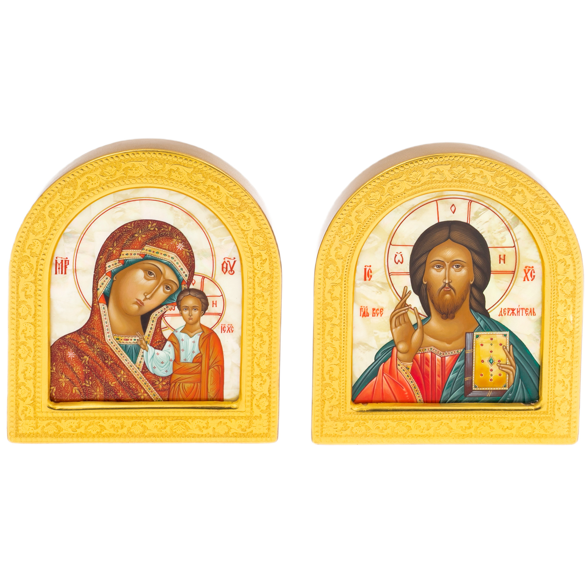 Венчальная пара на натуральном перламутре "Богоматерь Казанская и Икона Спаситель"