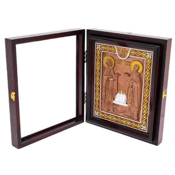 Римский МастерИкона-книга из бука "Казанская Богоматерь - Вседержитель"Икона-книга из бука "Казанская Богоматерь - Вседержитель"Икона изготовлена из массива бука, обладающего высокими прочностными характеристиками и приятной текстурой. Древесина, из которой выполнен образ, прошла длительную и щадящую сушку, чтобы в дальнейшем избежать образования трещин на изделии. Расписная икона в богатой резной оправе станет настоящим украшением иконостаса. Ее можнопо дарить на свадьбу, в день рождения, на крестины или на венчание. Икона изготовлена по благословению Русской Православной Церкви с соблюдением традиционных христианских канонов.