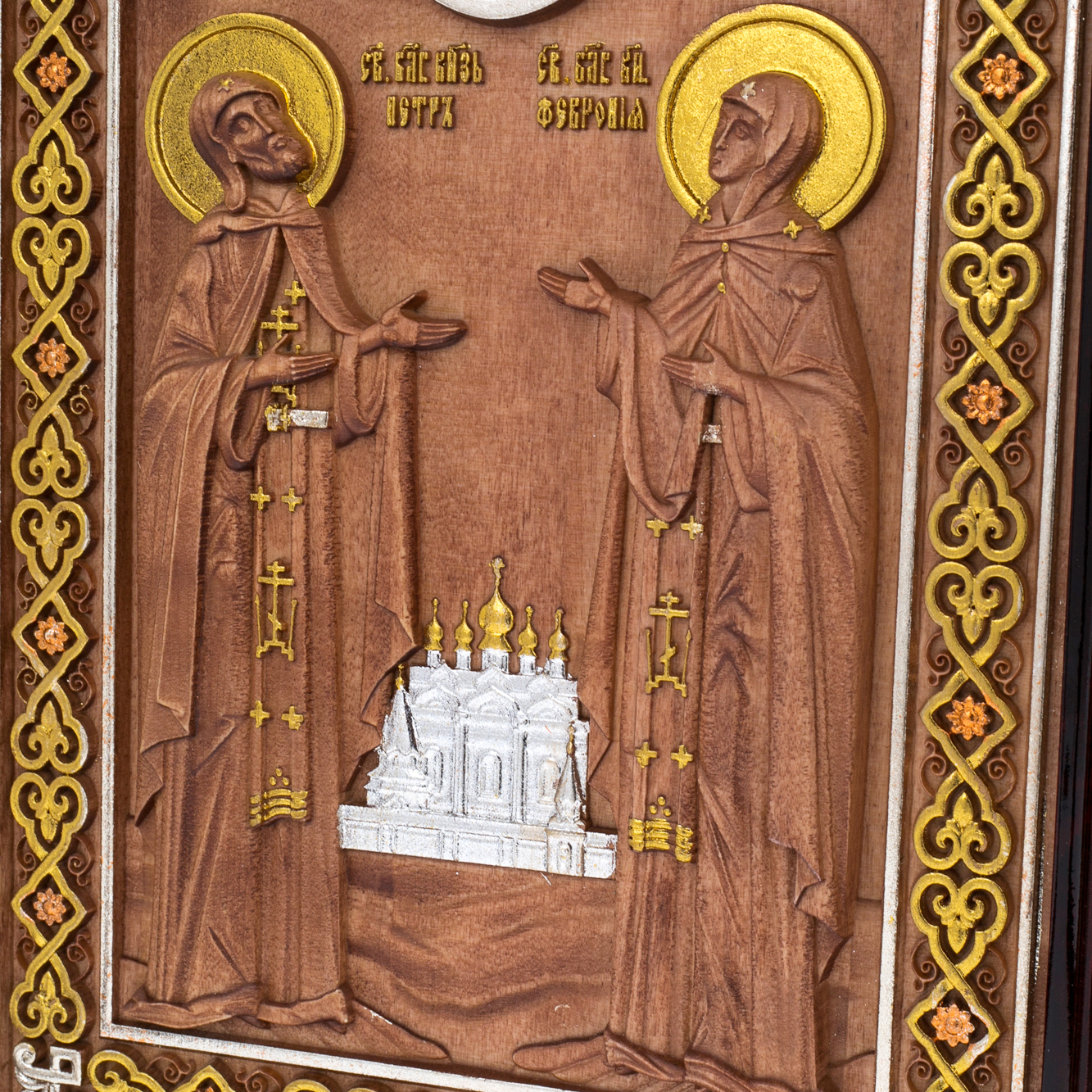 Икона из березы "Февронья и Петр" в киоте
