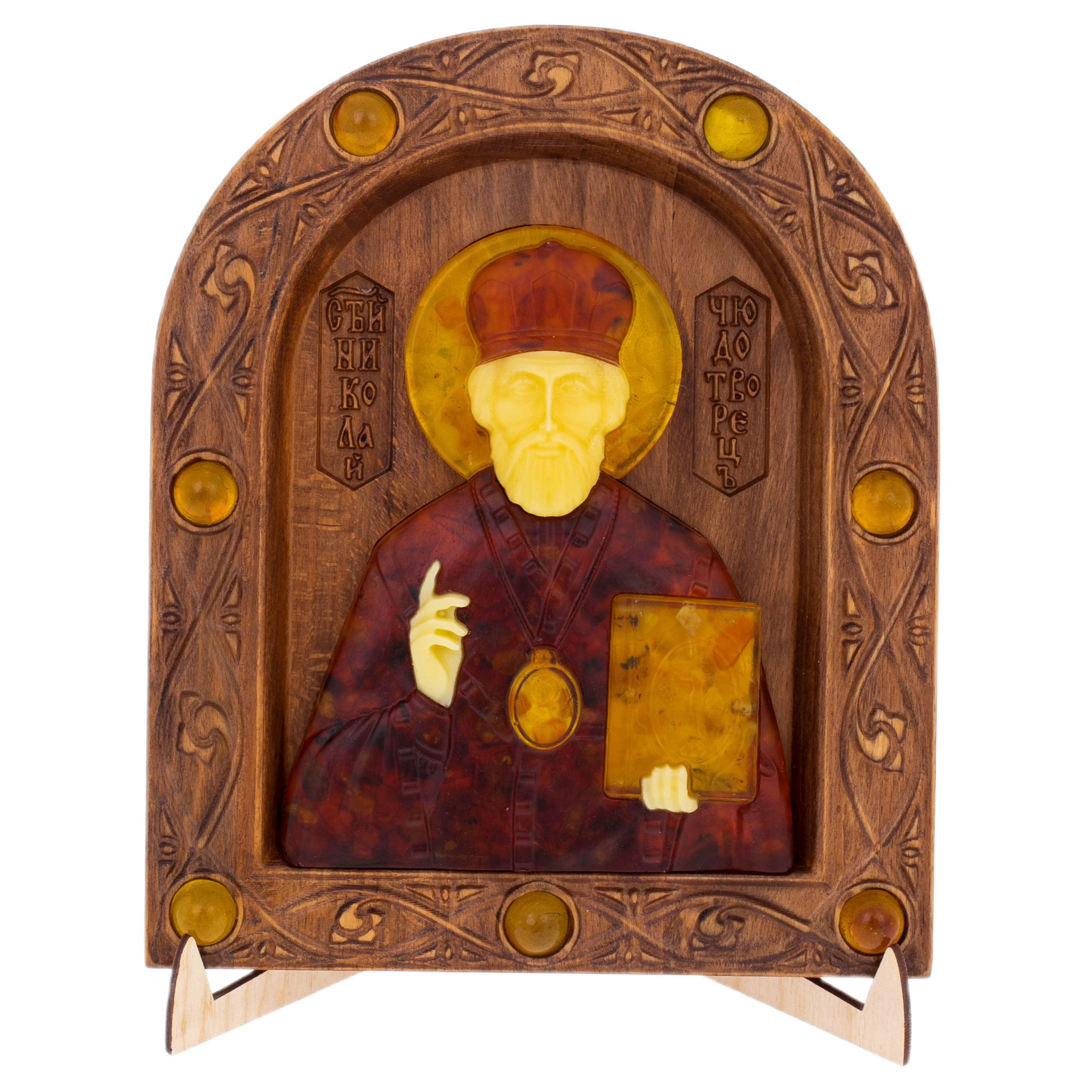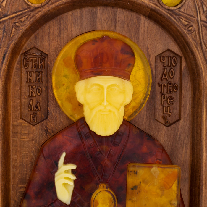 Икона из янтаря "Николай чудотворец"Икона из янтаря "Николай чудотворец"Икона Николая Чудотворца помогает всем молящим о защите и покровительстве. Считается, что больше всего святой покровительствует путешественникам, воинам, торговцам, банкирам, студентам и, конечно, детям. Икона защищает невинно оклеветанных и осужденных от несправедливого суда, помогает оступившимся встать на путь истинный. Николай Угодник помогает примириться поссорившимся, исцелиться от недугов и зависимостей болящим, одиноким – обрести семейное счастье, родить и вырастить здоровых детей. В общем, если вы приходите в церковь и не знаете, у какого святого просить защиты, идите к Николаю – не ошибетесь.