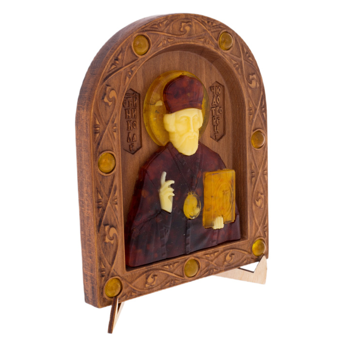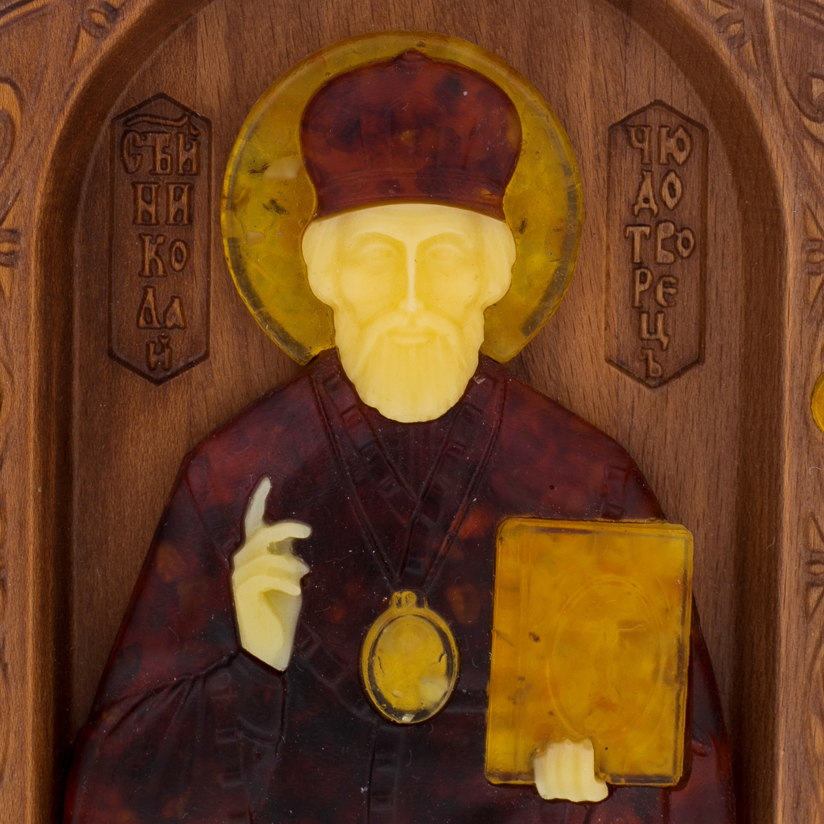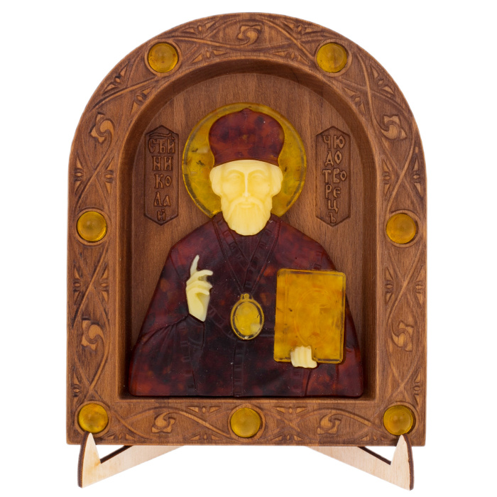 Икона из янтаря "Николай чудотворец"Икона из янтаря "Николай чудотворец"Икона Николая Чудотворца помогает всем молящим о защите и покровительстве. Считается, что больше всего святой покровительствует путешественникам, воинам, торговцам, банкирам, студентам и, конечно, детям. Икона защищает невинно оклеветанных и осужденных от несправедливого суда, помогает оступившимся встать на путь истинный. Николай Угодник помогает примириться поссорившимся, исцелиться от недугов и зависимостей болящим, одиноким – обрести семейное счастье, родить и вырастить здоровых детей. В общем, если вы приходите в церковь и не знаете, у какого святого просить защиты, идите к Николаю – не ошибетесь.