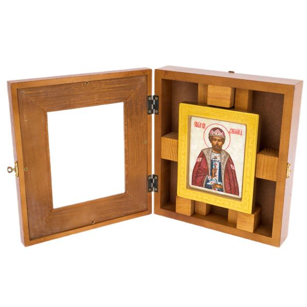 Такой образ предназначен для тех, кто стремится соединить в своём доме аристократическую культуру, высочайшее мастерство декоративных техник и искреннее почитание православной традиции. Икона в киоте органично вписывается как в классический интерьер кабинета или гостиной, так и в частную молитвенную комнату, воплощая идею покровительства, благого начала и преемственности духовных ценностей.