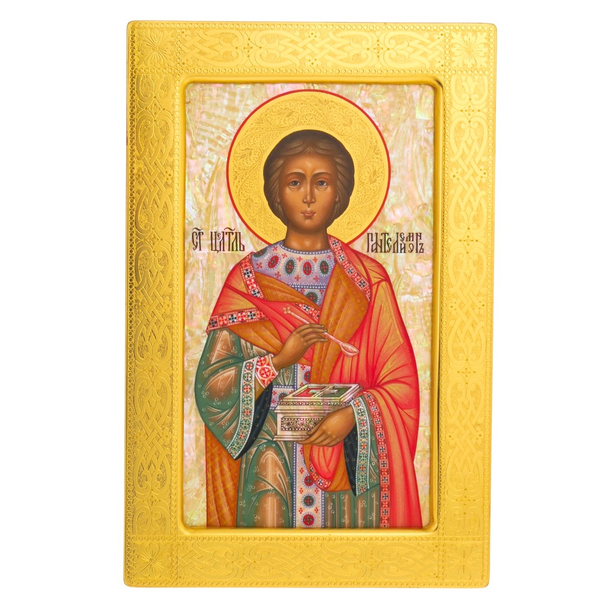 Икона на натуральном перламутре "Пантелеймон Целитель"