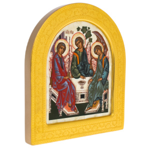 Икона на натуральном перламутре "Святая Троица" в золотой раме