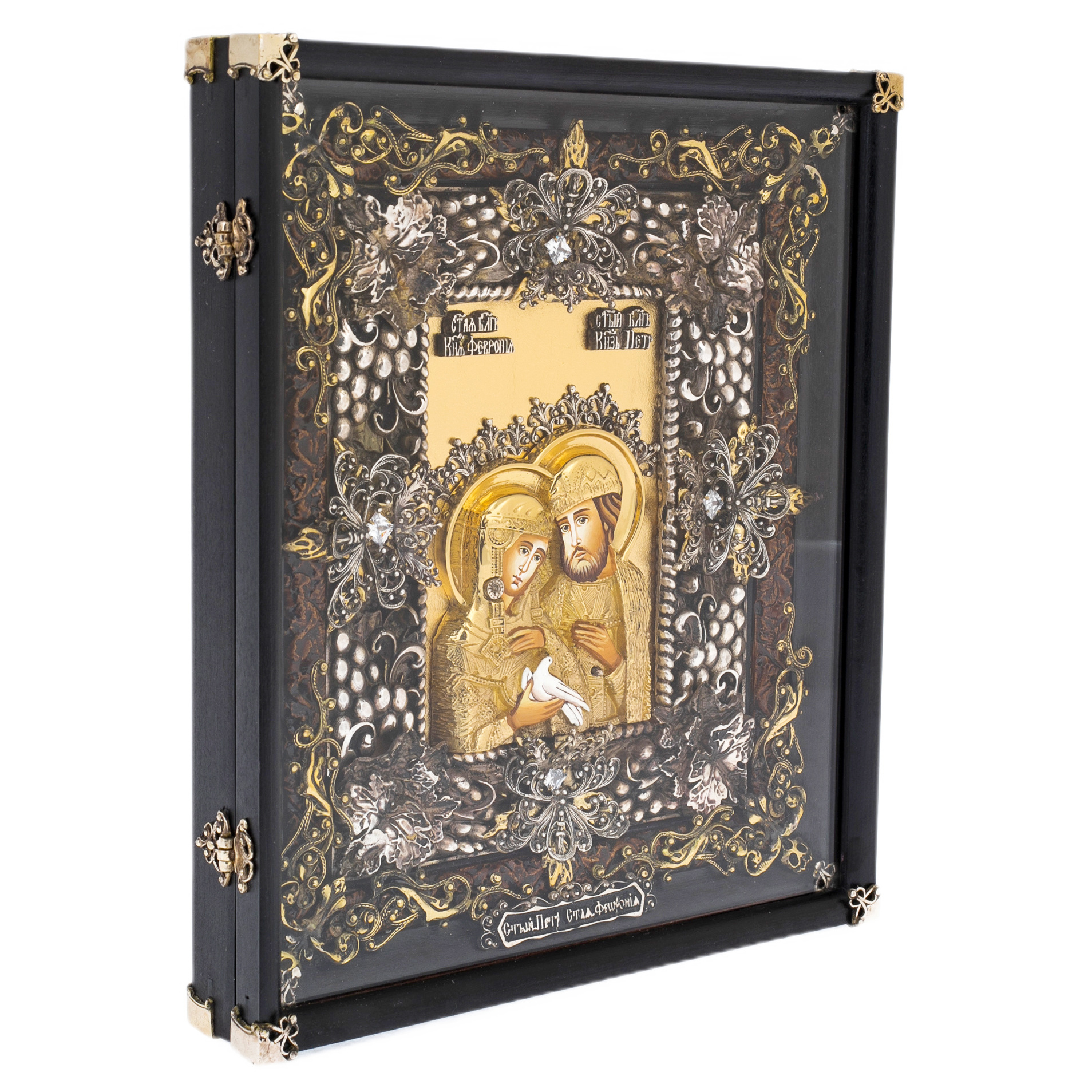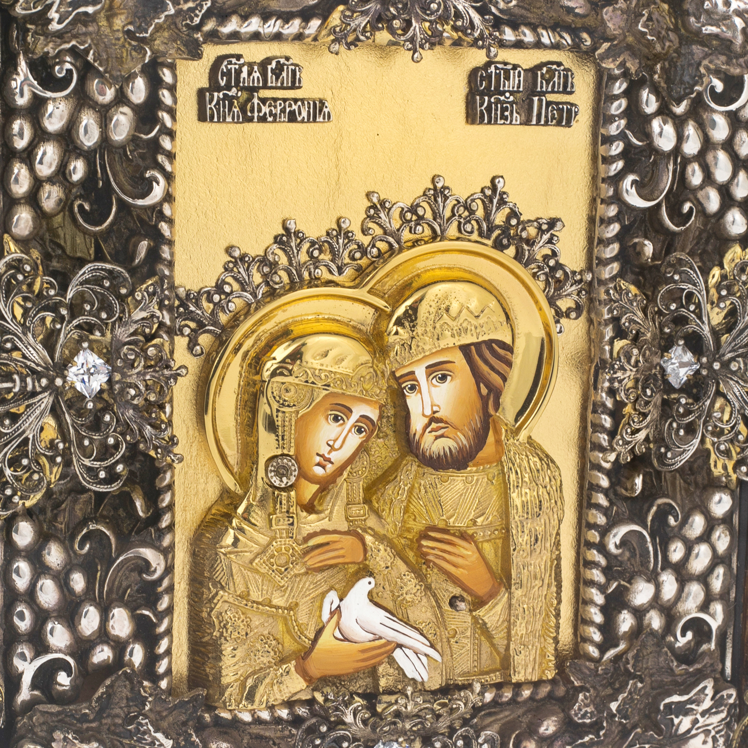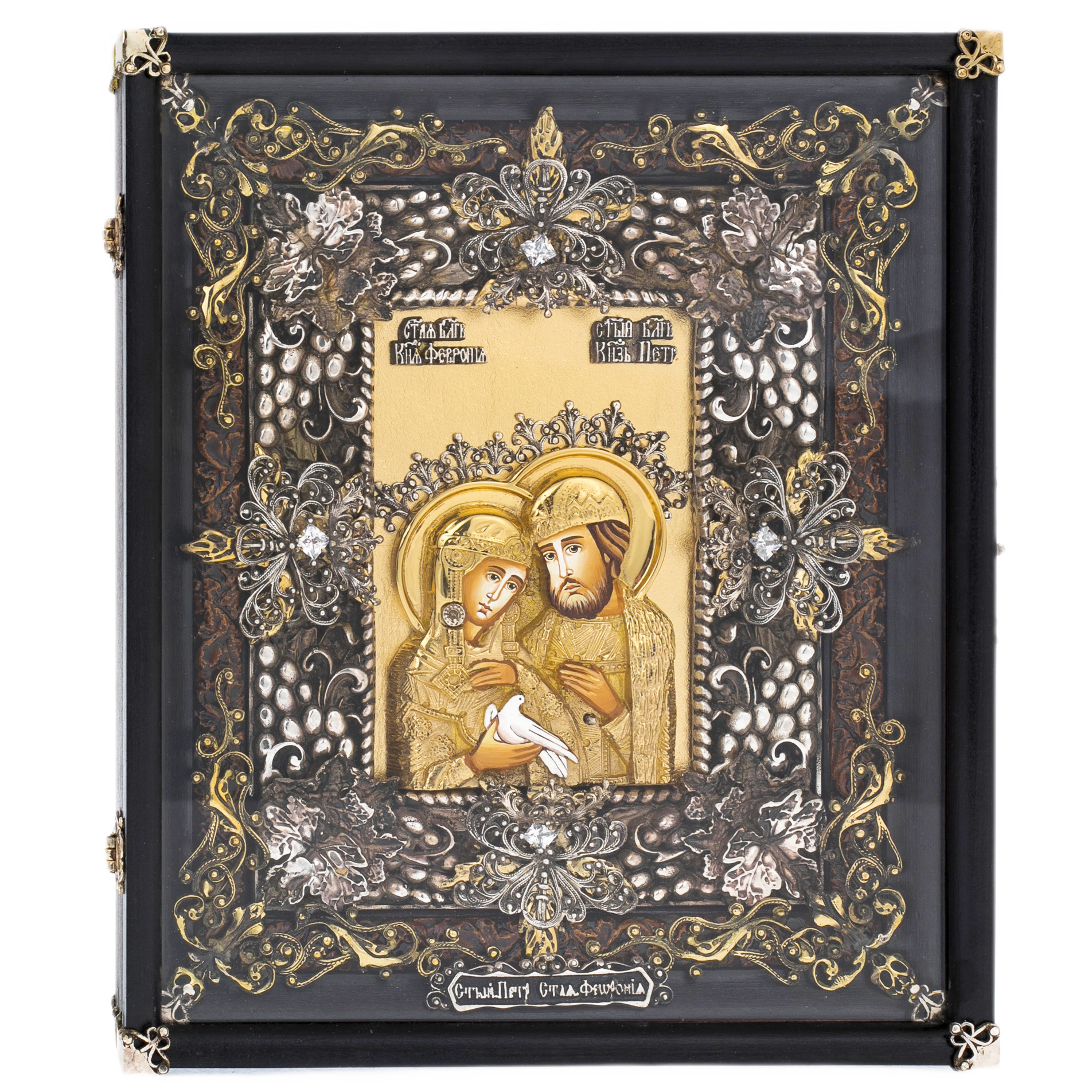 Икона с художественным литьём "Петр и Феврония" в окладе