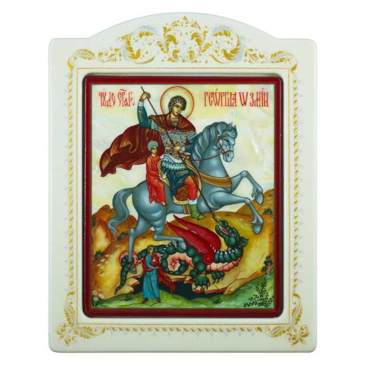 Икона с перламутром "Георгий Победоносец" в раме с орнаментом