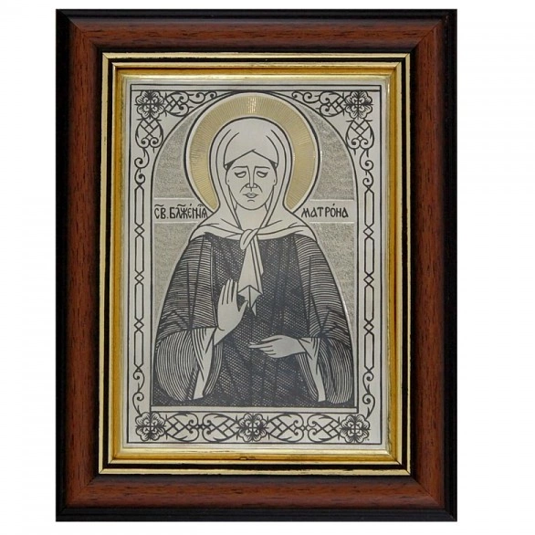 Икона с драгоценными камнями "Матрона Московская" с цирконием позолоченнаяИкона с драгоценными камнями "Матрона Московская" с цирконием позолоченнаяРабота выполнена вручную из красивых,дорогих материалов с соблюдением всех древних иконописных традиций. Лик святой и фоновая картина выложены из мельчайших частиц – разноцветных камней. Мастер скрупулезно проработал каждую деталь, что позволило придать работе особу выразительность и яркость. Дополняет роскошную икону из камней и стекла элегантный узорный оклад натурального дерева.