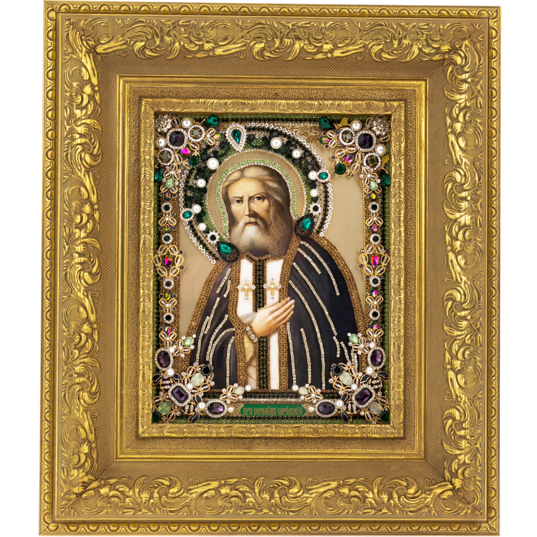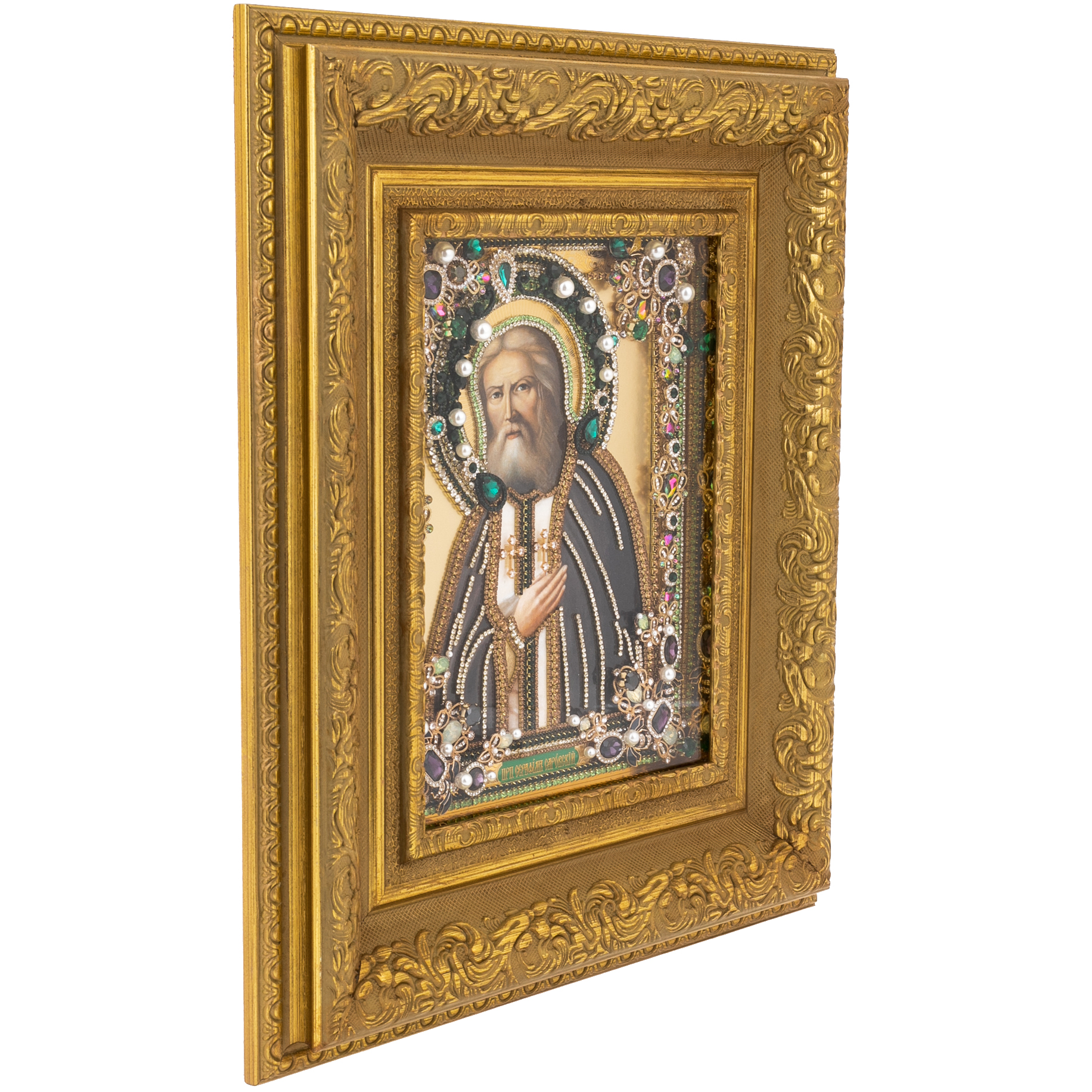 Икона масляная "Серафим Саровский" с сусальным золочением