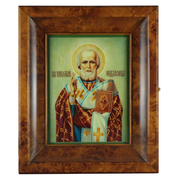 Икона на натуральном перламутре "Николай Чудотворец" в киоте