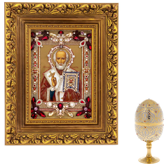 Набор подарочный "Николай Угодник" с иконой масляной и яйцом-рюмкой