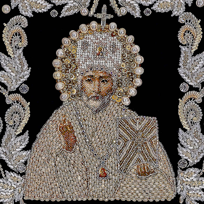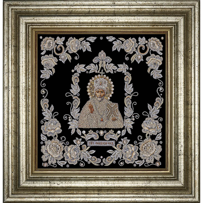 Вышитая икона "Святитель Николай Чудотворец" в раме