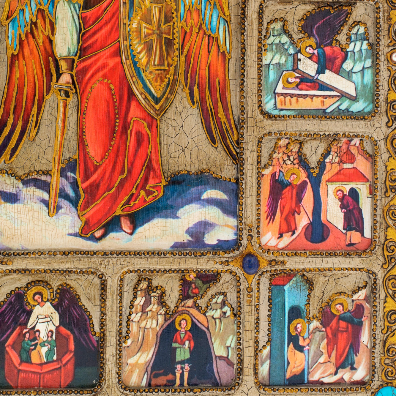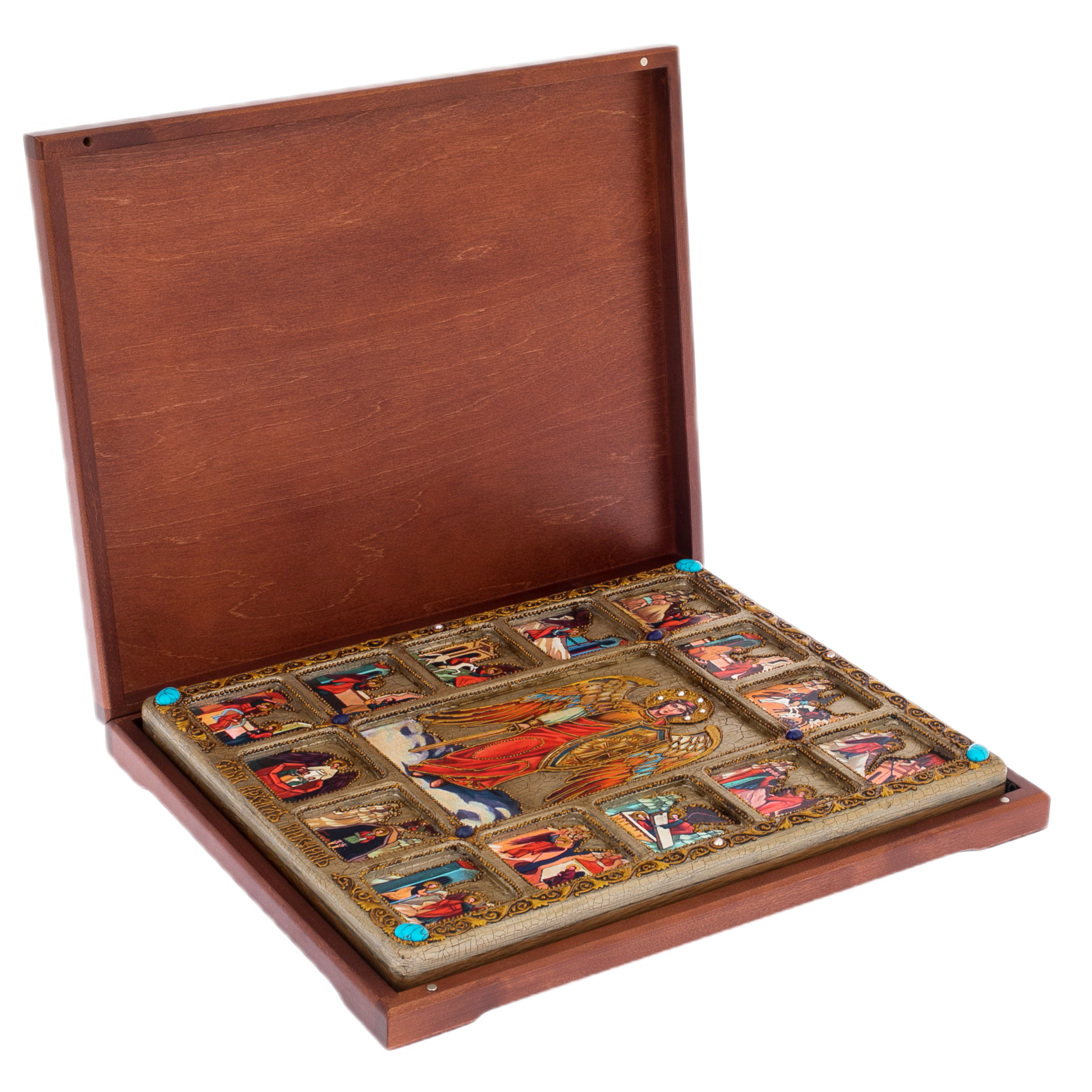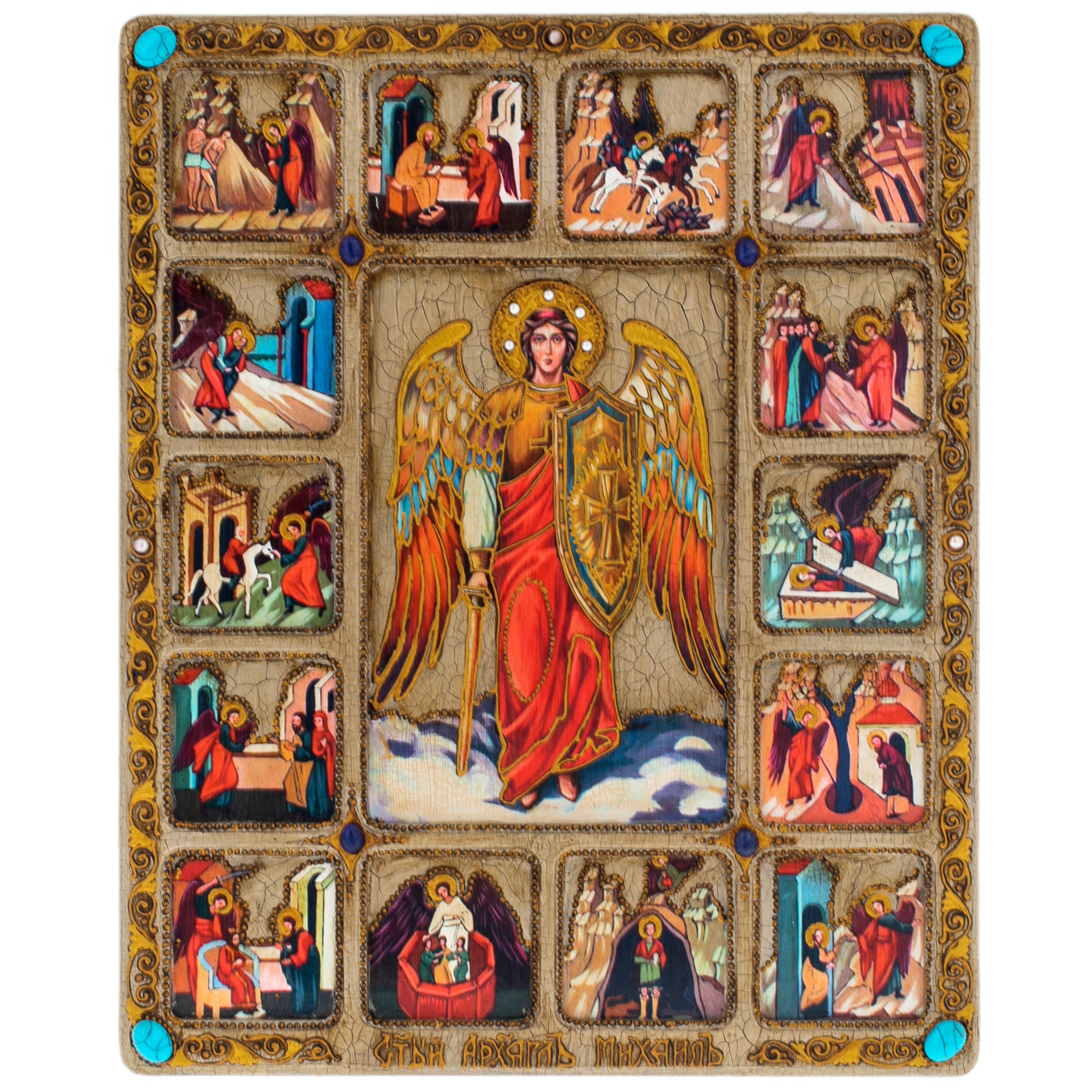 Подарочная икона из мореного дуба "Архангел Михаил" с житием