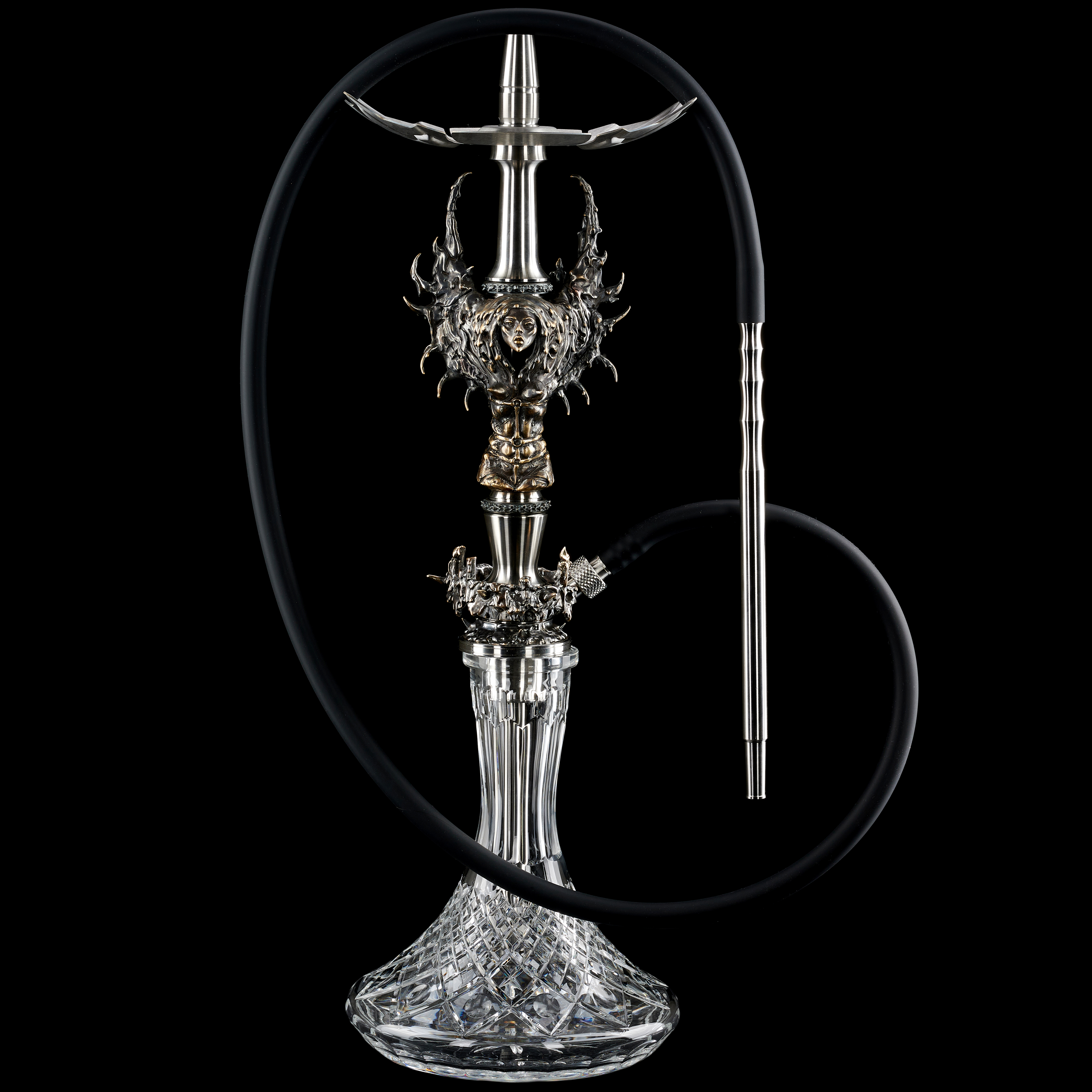 Комплектация: шахта, колба, блюдце, силиконовый шланг Soft Touch, мундштук стальной, уплотнитель для чаши, запасной шарик клапана, щипцы, чаша, брендированная упаковка под шахту, брендированная упаковка под колбу, художественный элемент.