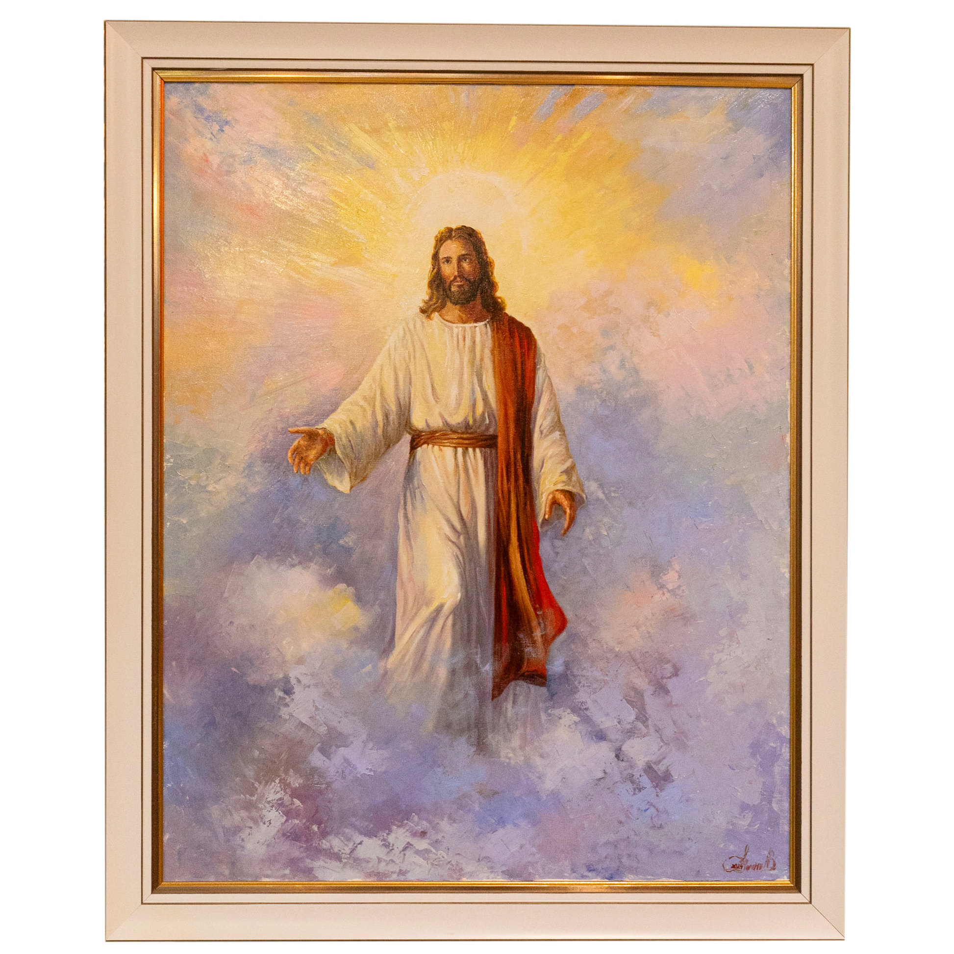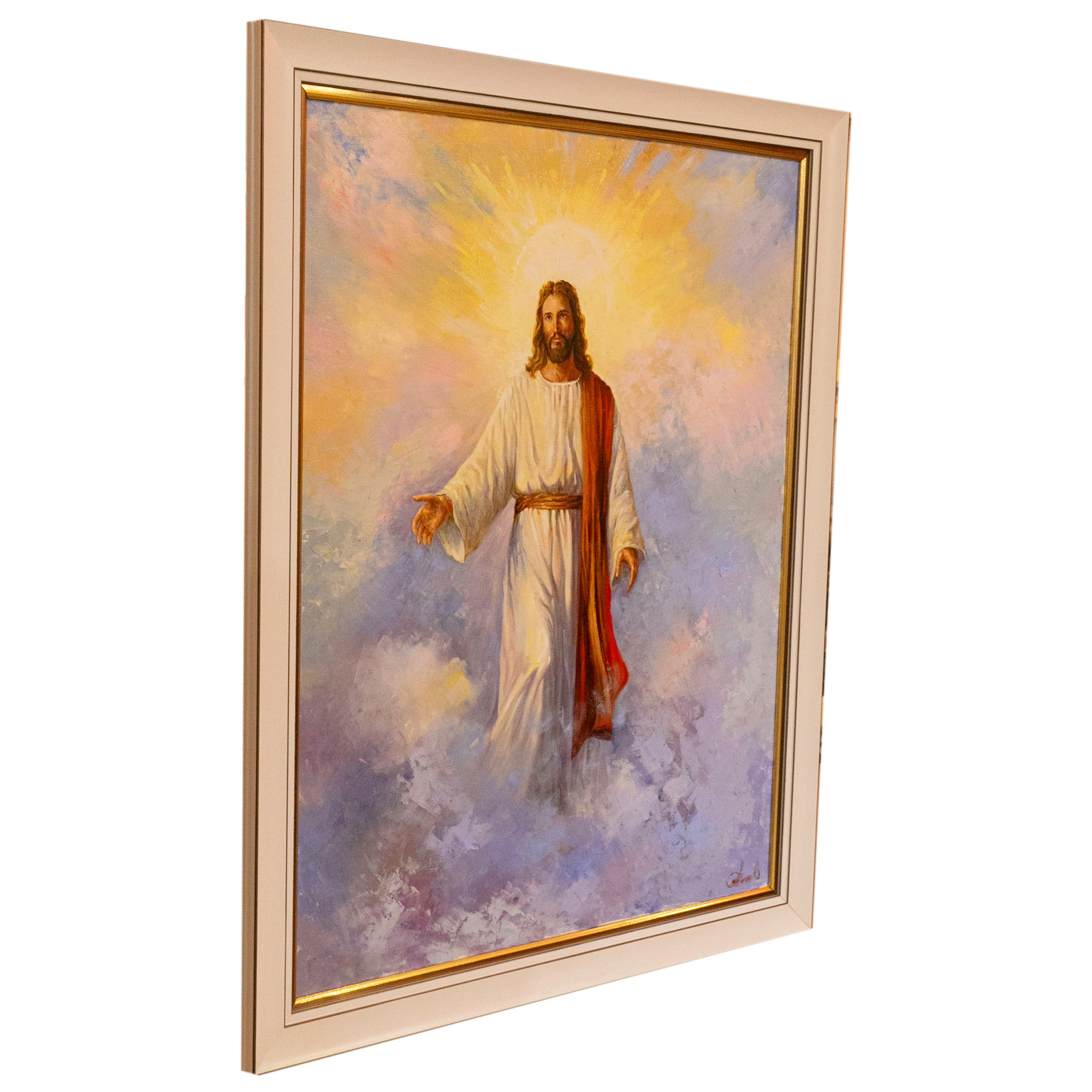 Перед вами авторская масляная живопись — «Вознесение Иисуса Христа», воплощённая на холсте рукой современного мастера. Картина написана в импрессионистской манере, с филигранным чувством света, объема и движения, и заключена в элегантную раму цвета слоновой кости с внутренней золотистой окантовкой. В центре композиции — фигура Христа, окружённая струящимися облаками и сиянием неземного света, изливающегося с небес. Световые потоки, мягко рассеивающиеся по небосводу, словно наполняют полотно внутренним дыханием. Белоснежные одежды с охристо-красным покрывалом придают образу благородство, умиротворённость и величие. Тончайшие мазки на фоне создают эффект лёгкой акварельной дымки, где оттенки лавандового, розового и небесно-голубого сливаются, формируя мистическую атмосферу божественного присутствия. Этот сюжет олицетворяет момент духовного преображения, ухода ввысь, где земное отступает, а небесное открывается зрителю.