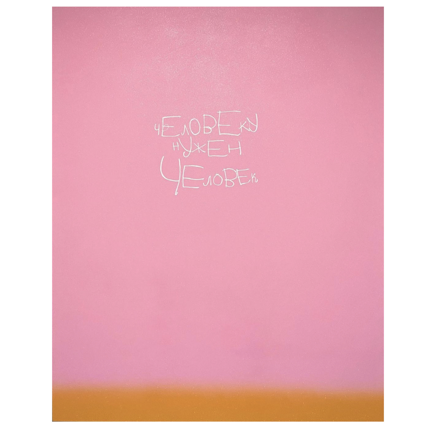 Картина “Человеку нужен человек” — визуальное признание в простом, но фундаментальном чувстве, которое лежит в основе всей человеческой природы. На однородном розовом фоне, словно растворённом в дыхании, белыми детскими буквами выведена фраза, не нуждающаяся в комментариях. Её наивность и нарочитая неровность подчёркивают искренность: это не слоган и не лозунг, а тёплое напоминание. Ни композиция, ни цвет не отвлекают от сути — они лишь обрамляют главное: человек важен человеку. Без пафоса, без деталей, без рамок.