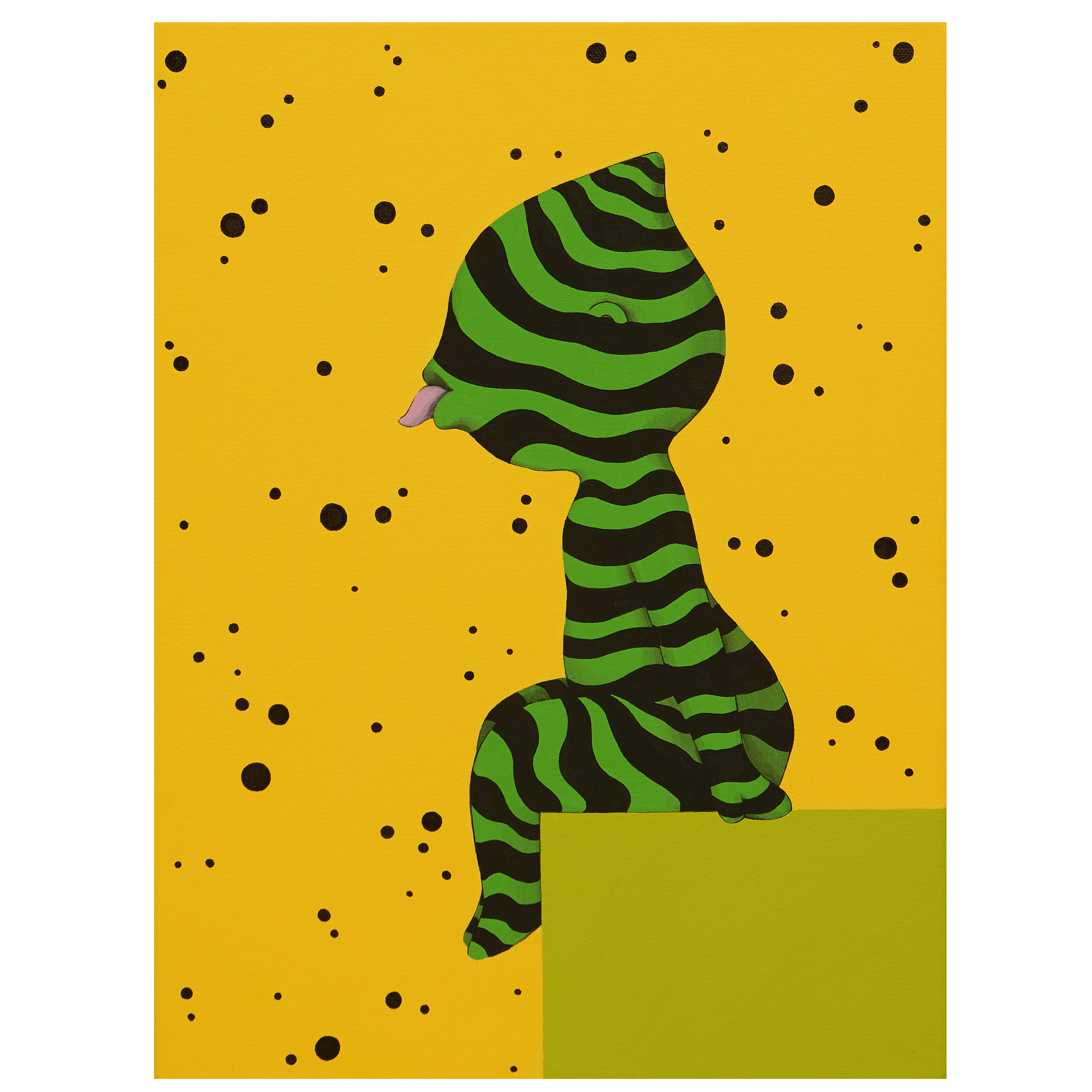 На фоне яркого жёлтого цвета, рассыпанного чёрными точками, словно космической пылью, сидит фантастический персонаж Sinkini, покрытый зелёно-чёрными волнами. Его образ вызывает ассоциации с биолюминесцентным существом, пришедшим из мира грёз или далёкой галактики. Внешность персонажа непривычна, но от этого ещё более притягательна — он провоцирует на размышления, на переосмысление привычных форм и представлений о красоте.