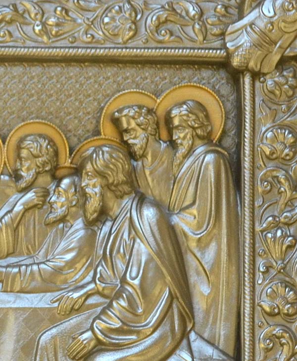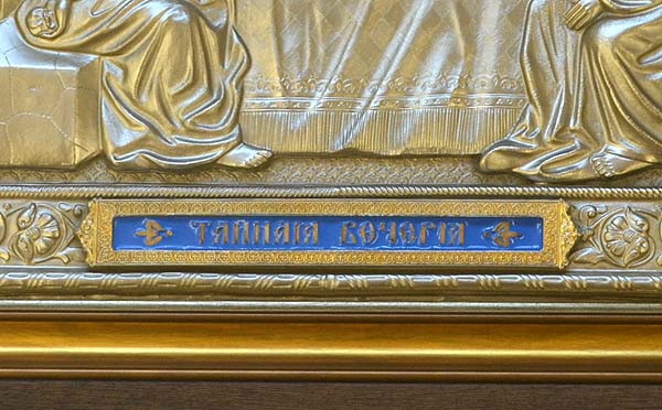 Материалы:медь, золочение, ювелирные эмали, стекло, деревянная рама.