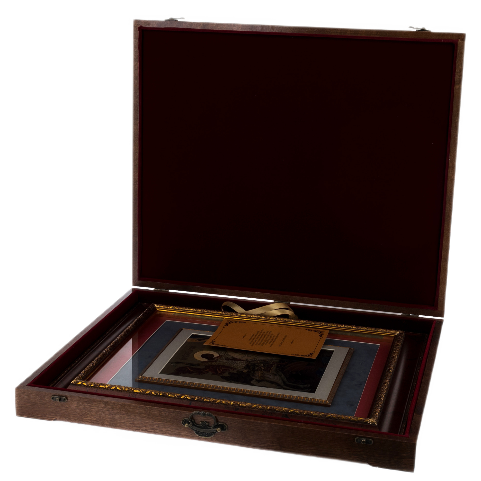 Материалы:позолота, бархатное паспарту, стекло.