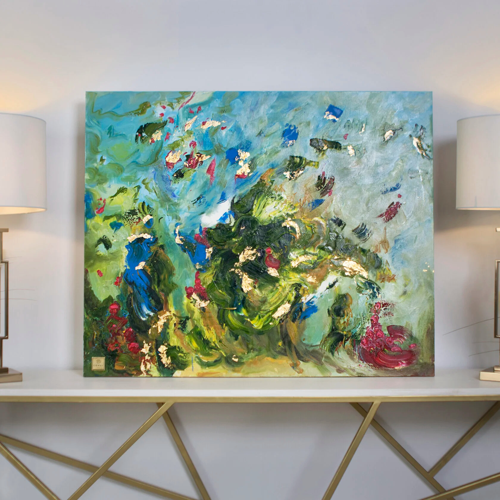 Материал: Золото сусальное 24 карата листовое, льняной холст, экологичные масляные краски, поталь.