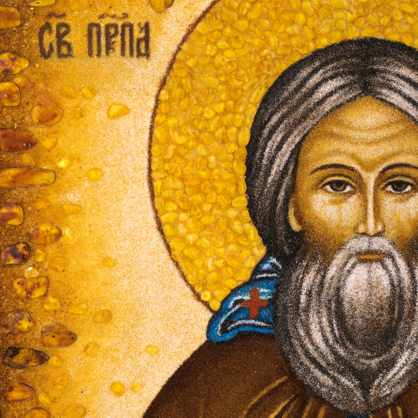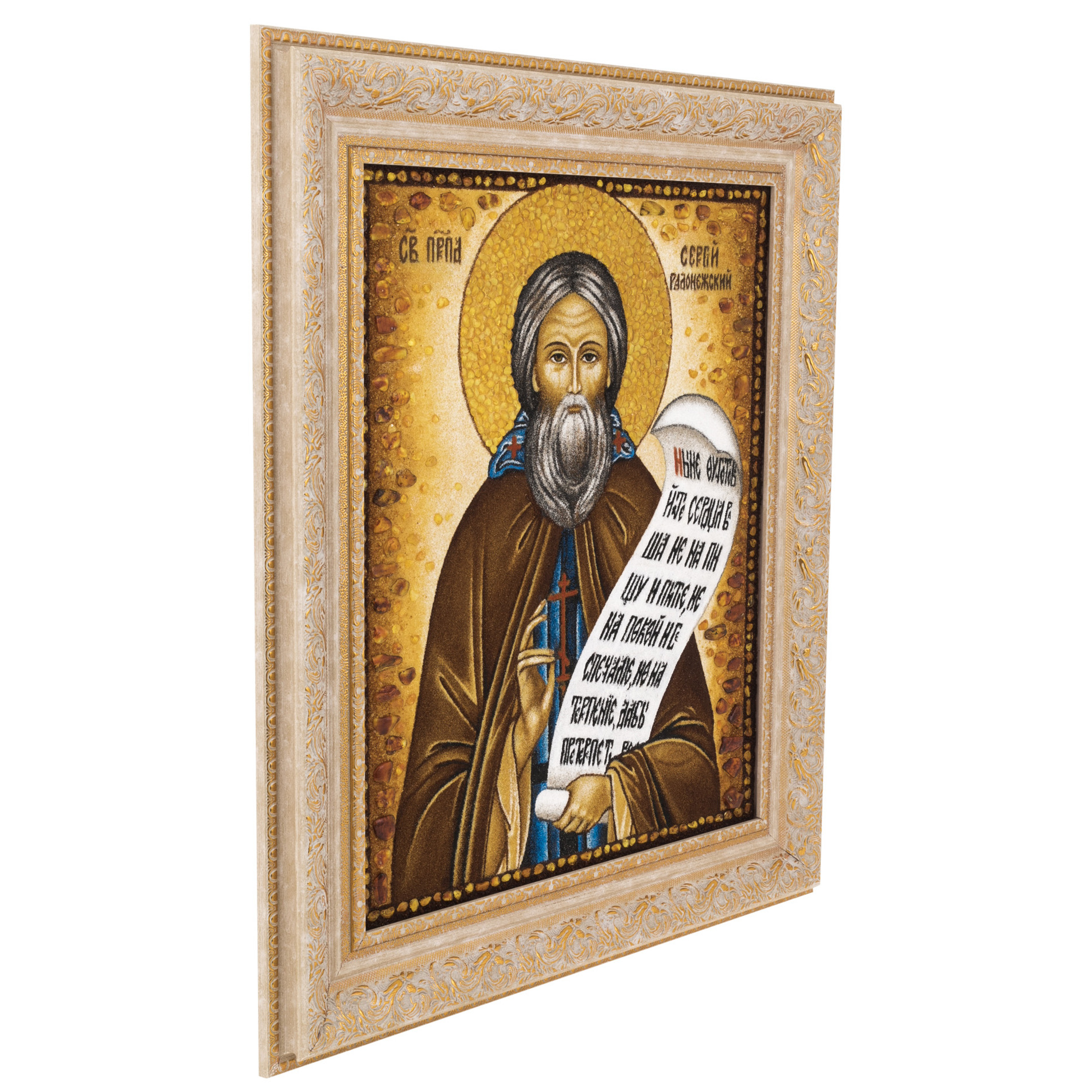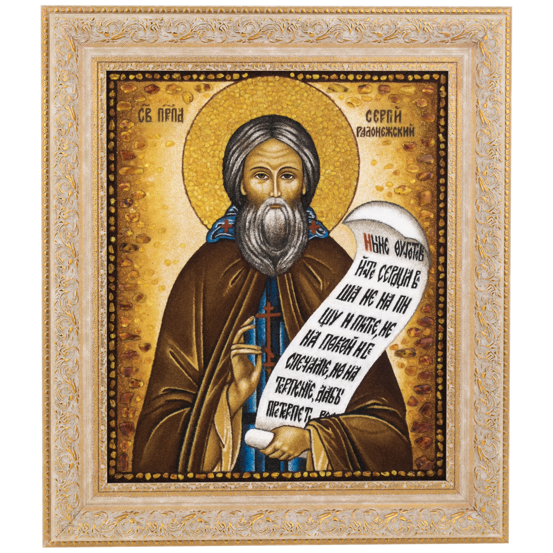 Икона из янтаря "Преподобный Сергий Радонежский" (рамка слоновая кость с золотом)