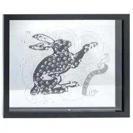 Marstle Панно стеклянное "Созвездие зайца 3D" с кристаллами Swarovski Панно стеклянное "Созвездие зайца 3D" с кристаллами Swarovski Стеклянное панно «Созвездие Зайца» — это роскошный предмет интерьерного искусства, созданный для тех, кто ценит утончённость деталей и стремится окружить себя эксклюзивными произведениями дизайна. Изделие выполнено из высококачественного прозрачного стекла и дополнено трёхмерной фигурой зайца, символизирующей созвездие Лепуса. Композиция оформлена с применением кристаллов Swarovski, что придаёт ей сияние и глубину, а также создаёт эффект мерцающего ночного неба. Панно идеально подходит для пространства, где сочетаются современный вкус и стремление к необычному декору. Фигура зайца выстроена из множества мелких элементов, выполненных в чёрно-белой гамме и покрытых сверкающими кристаллами различной огранки и размера. Каждая часть композиции тщательно проработана: от контура тела до заострённых ушей и миниатюрного хвоста, что создаёт ощущение движения и живости образа. В нижней части композиции размещена надпись «LEPUS», выполненная в серебристом цвете и дополненная изящным декоративным завитком. Обрамление из чёрного дерева подчёркивает строгую эстетику изделия, акцентируя внимание на его графичности и световой игре камней. Панно предназначено для владельцев, которые выбирают не просто украшения для стен, а истории, воплощённые в материале и форме. Оно гармонично дополнит как классический, так и современный интерьер, став центральным акцентом в оформлении комнаты. Благодаря своей универсальности и благородному исполнению, эта работа способна украсить гостиную, кабинет или спальню, наполнив пространство атмосферой загадочности и аристократического шика. Это не просто элемент декора, а полноценное произведение искусства, созданное для тех, кто привык жить среди совершенства.