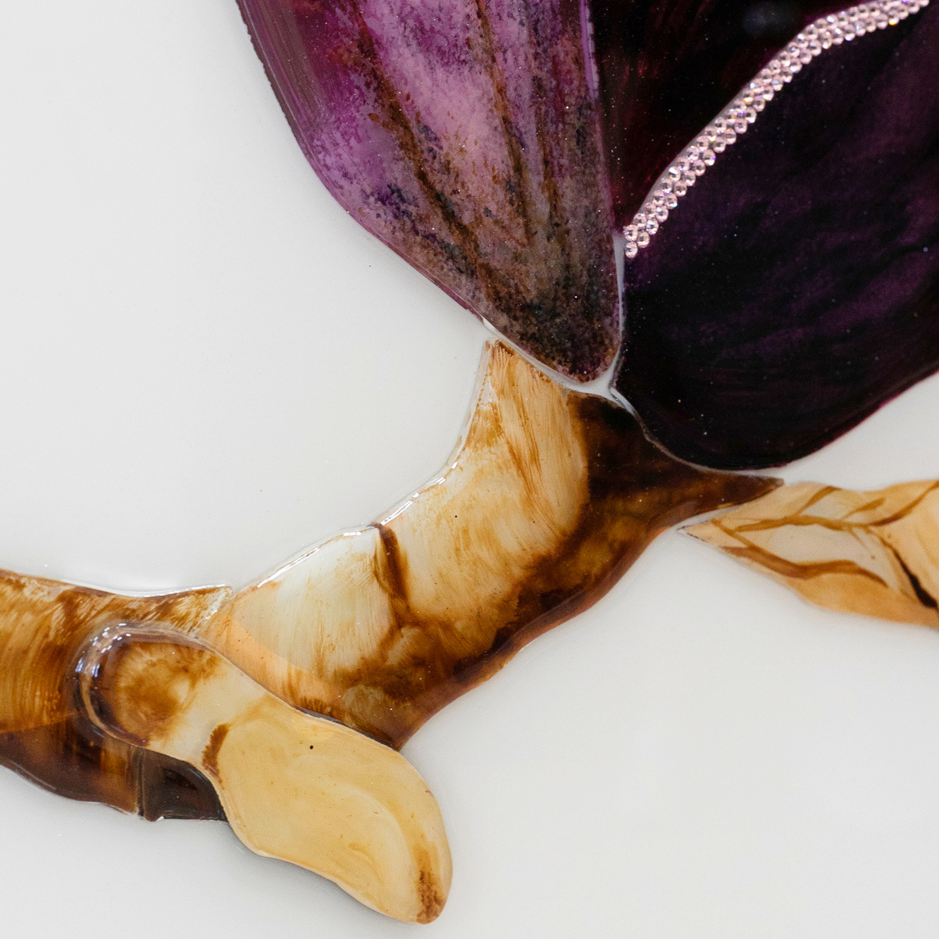 Материалы: барельеф, зеркальные элементы, агат, перламутр, инкрустация кристаллами и стразами Swarovski, декорирование природным горным хрусталем, смолы.