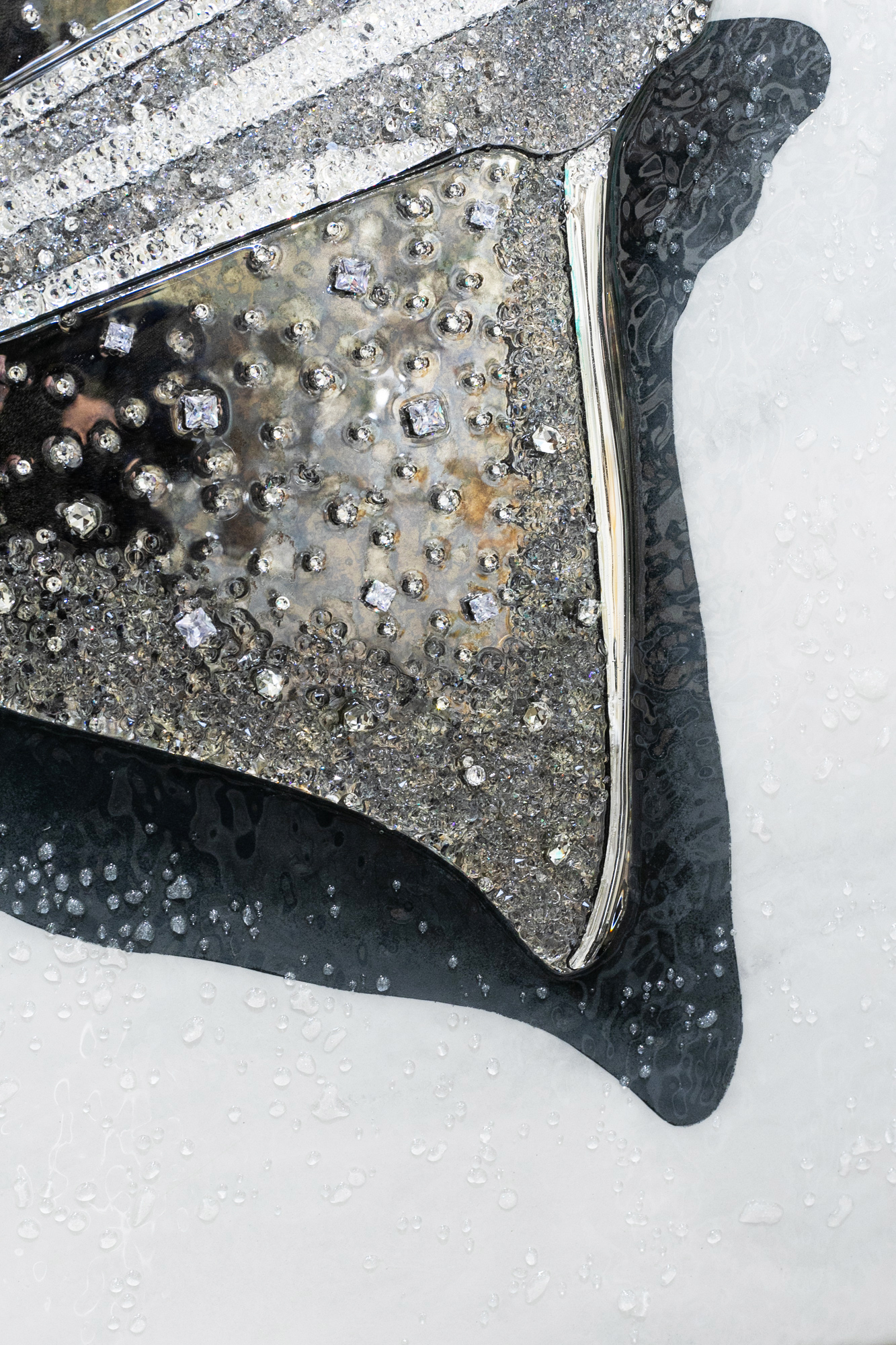 Материалы:состаренное зеркало оттенок серая бронза, хрустальные кристаллы ювелирной огранки, премиальные стразы Сваровски, фианиты (кубический цирконий) ювелирная смола.